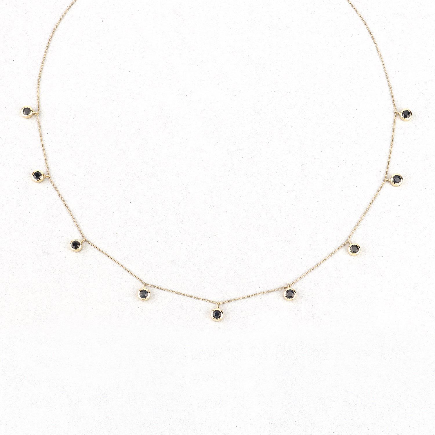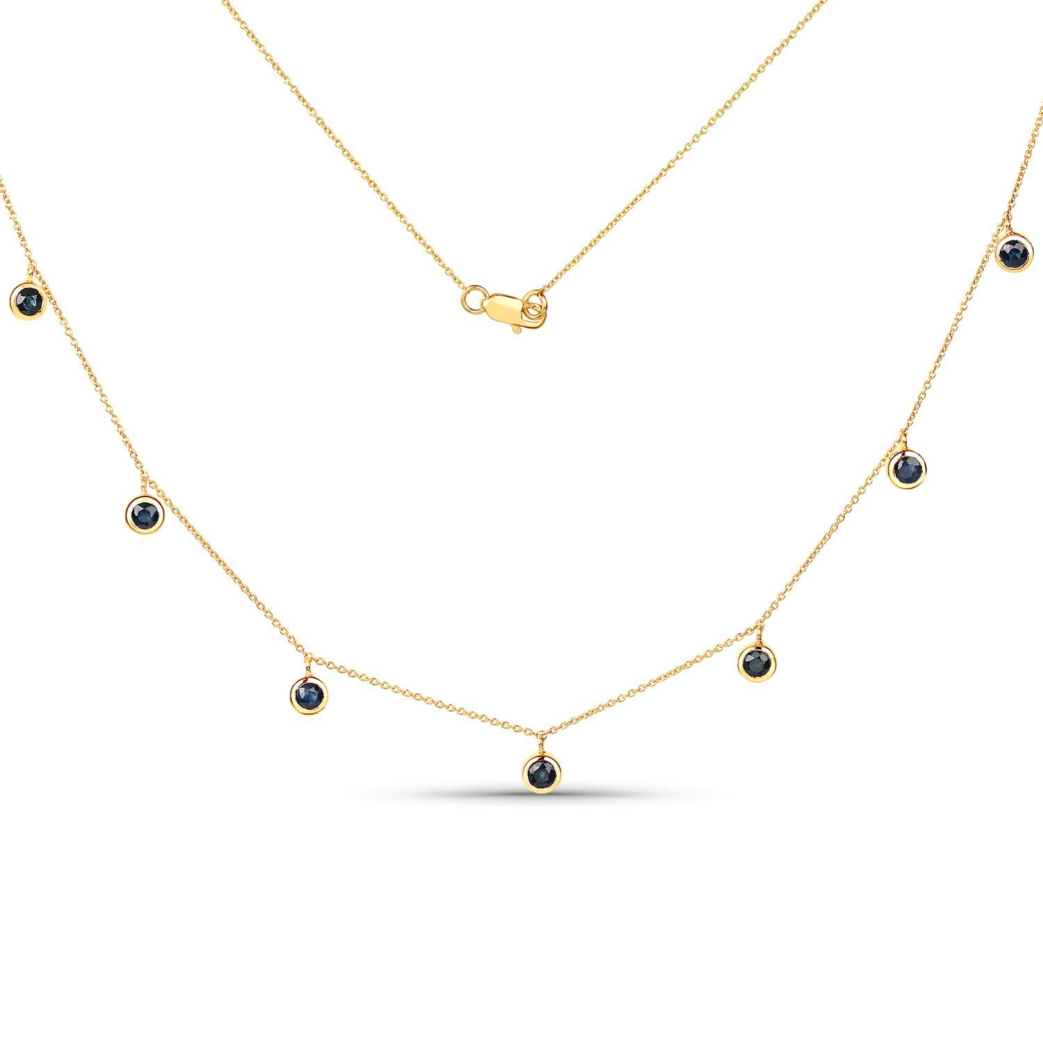 Blue Sapphire Round/3.00mm - 9/1.08 ctw Bezel Setting Natural Heat Treated E. 18 inch chain. Total weight of 2.84 grams.