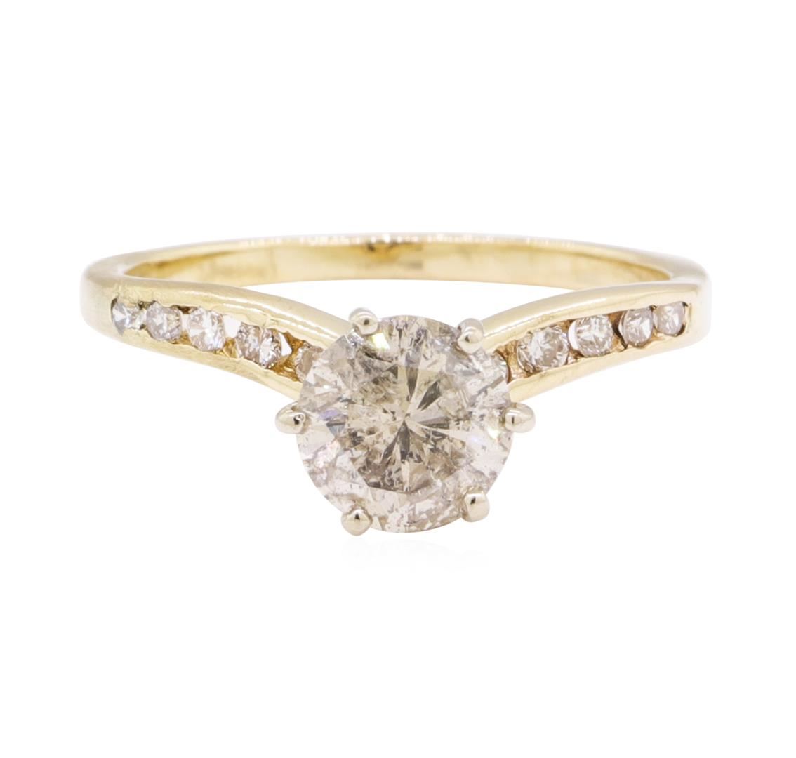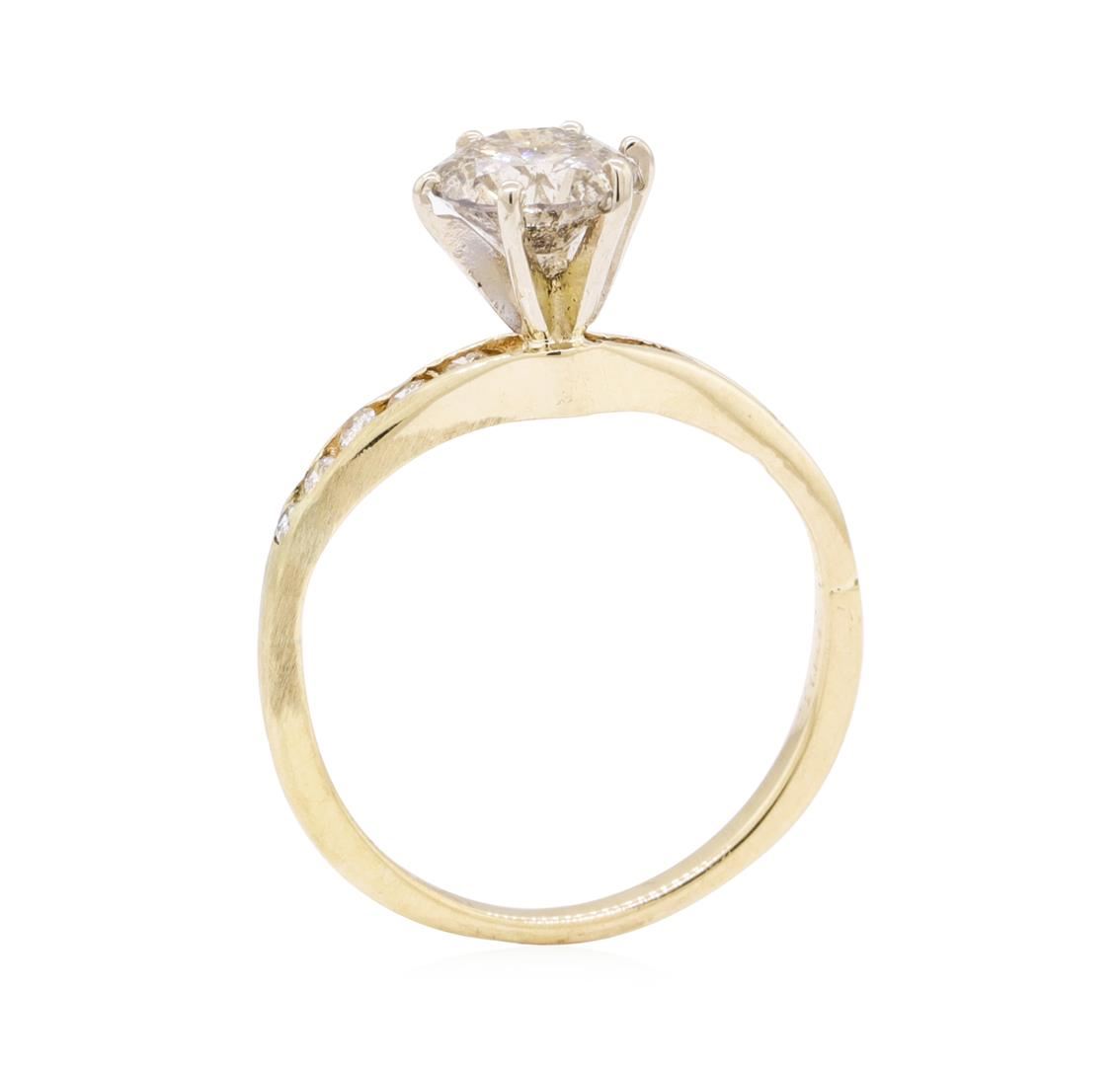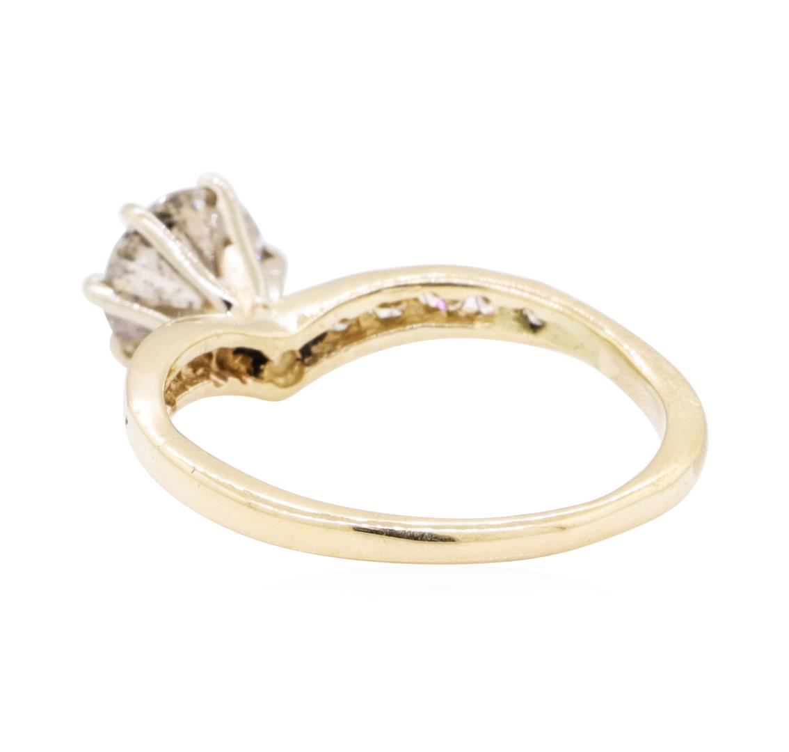 One chevron solitaire lady's ring featuring: 10KT yellow gold weighing 2.0 grams containing brownish diamonds weighing 1.15ctw. The ring is a size 5.5.