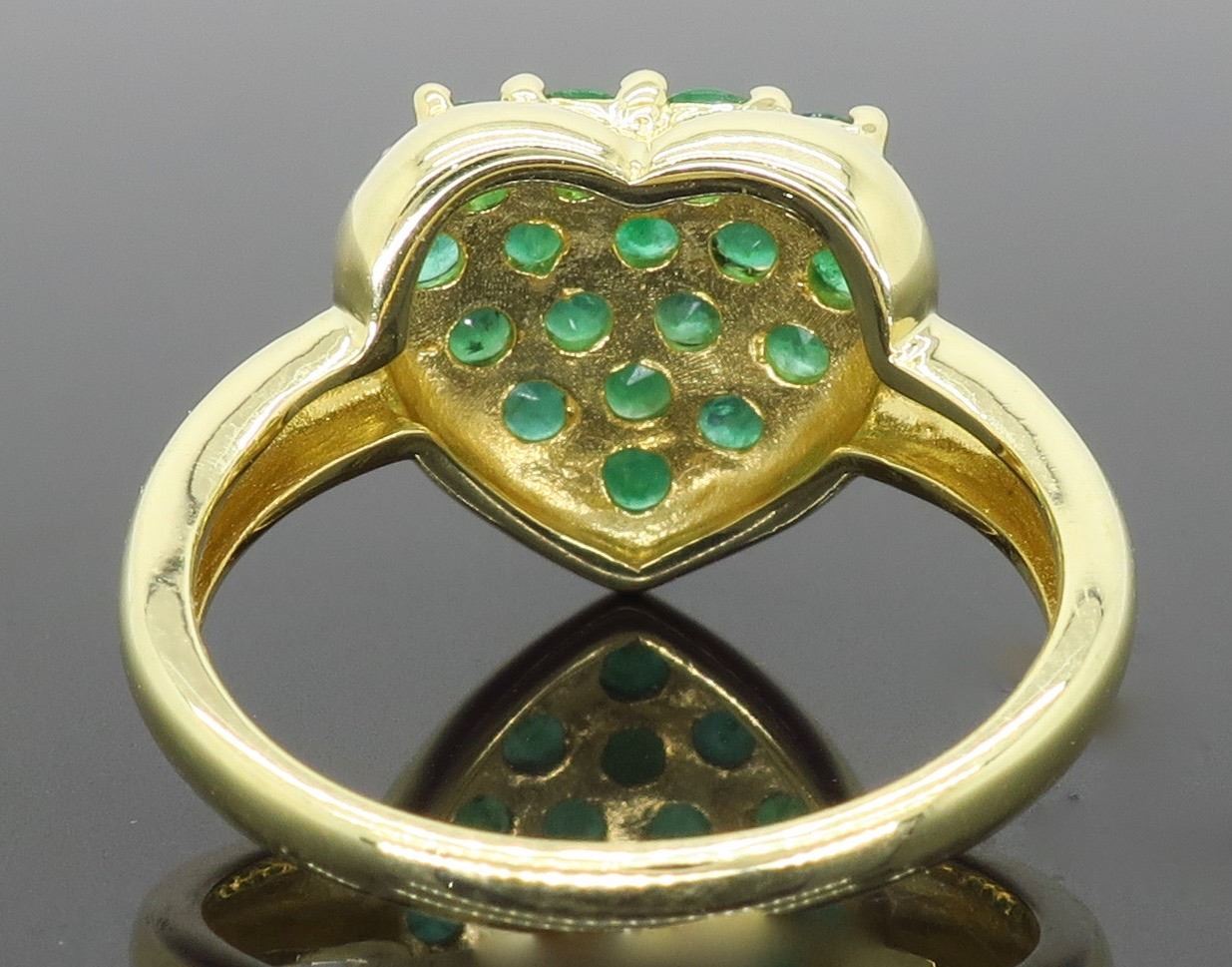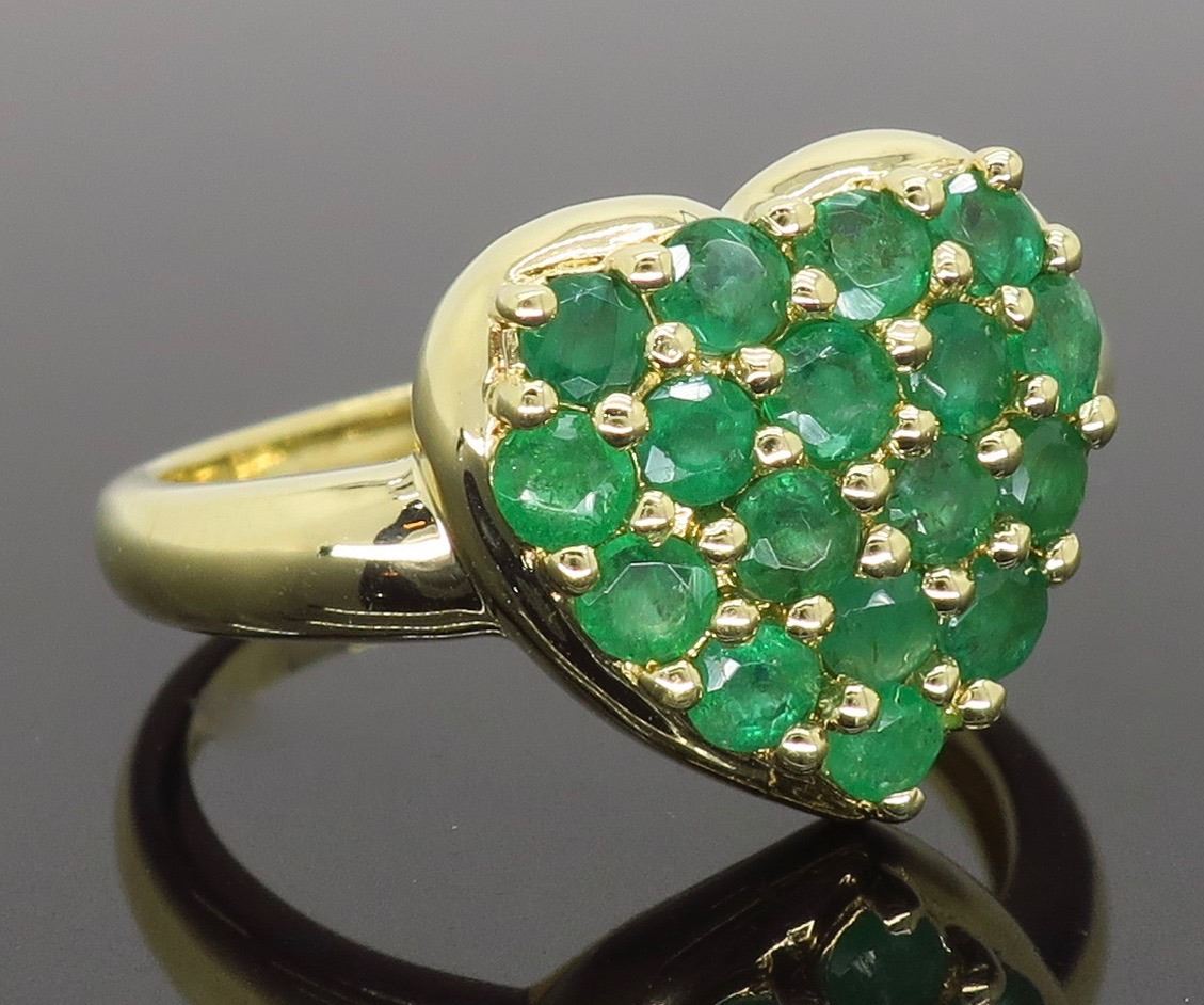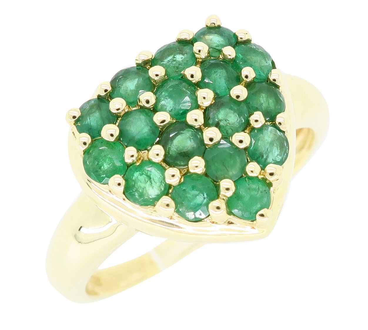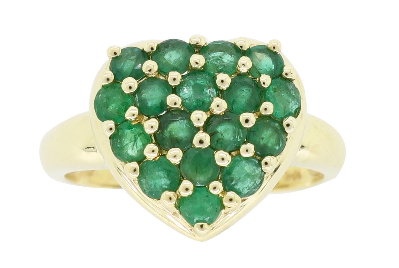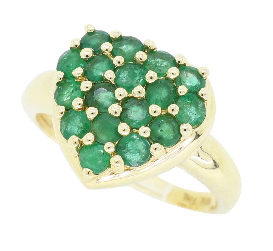 One 10KT Yellow Gold 1.25ctw Emerald Ring. (17) Round Emeralds with a total weight of 1.25cts. Total weight of this ring is 3.5 grams. Ring size is 6.75.
