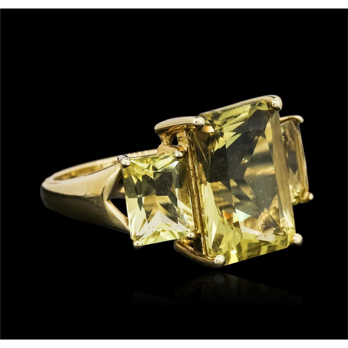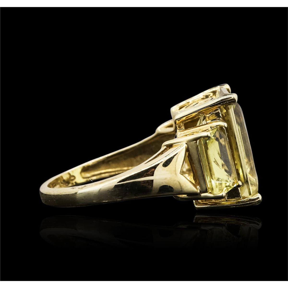 One ring featuring: 10KT yellow gold weighing 6.00 grams containing three lemon quartz center stones with a total weight of 11.97ct.