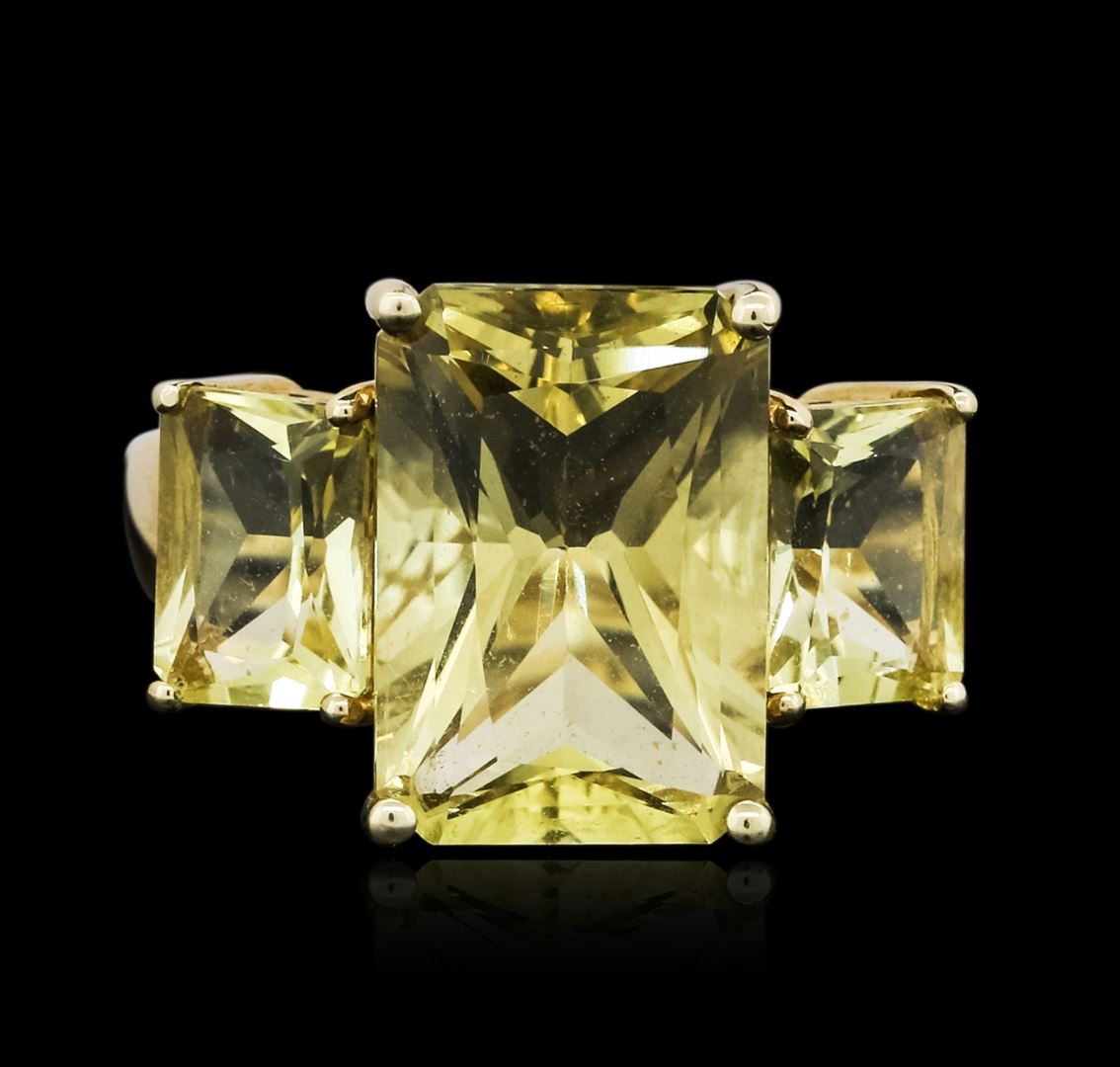 One ring featuring: 10KT yellow gold weighing 6.00 grams containing three lemon quartz center stones with a total weight of 11.97ct.
