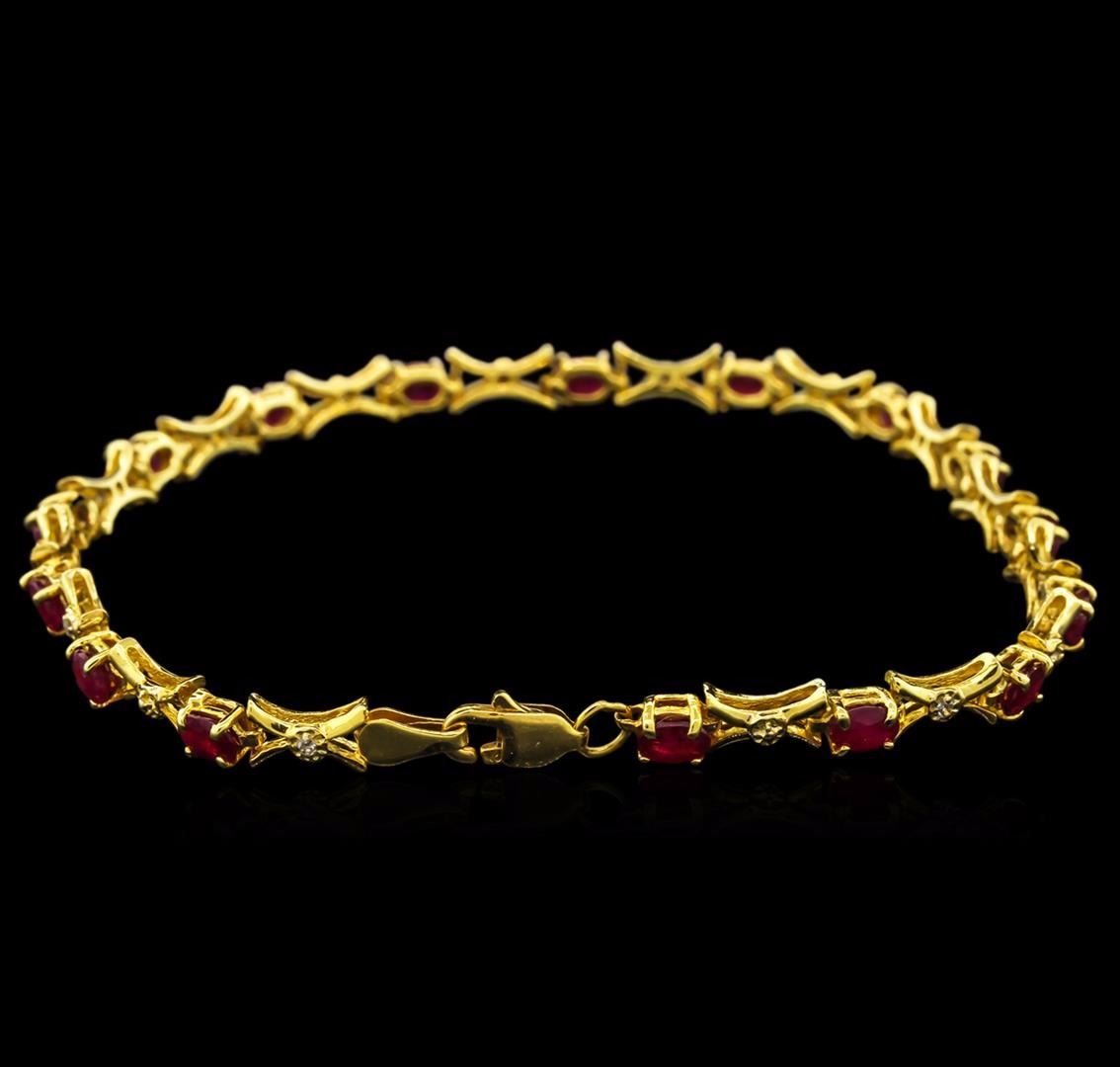 One tennis bracelet featuring: 10KT yellow gold weighing 5.60 grams containing rubies with a total weight of 3.50ct and diamonds with a total weight of 0.10ct.