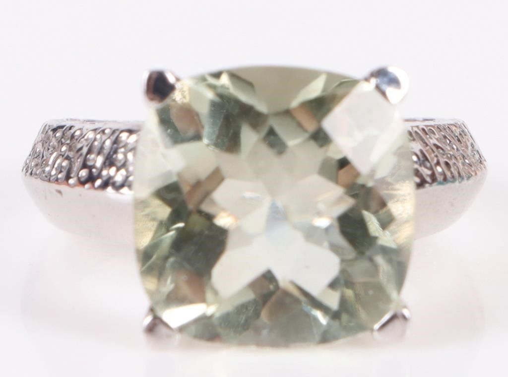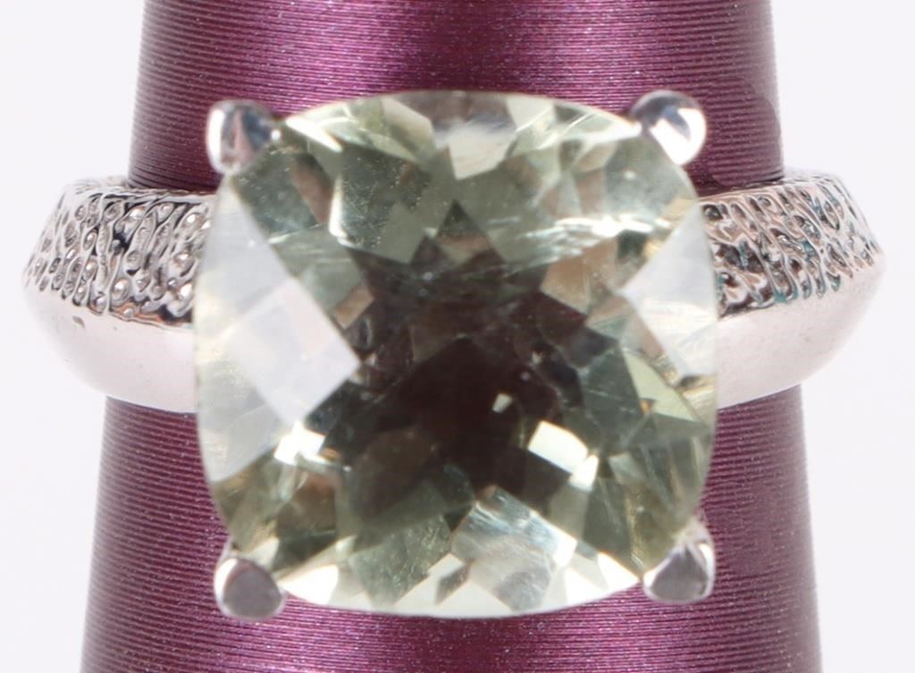 10mm light green tourmaline cushion-cut sterling silver ladies ring.