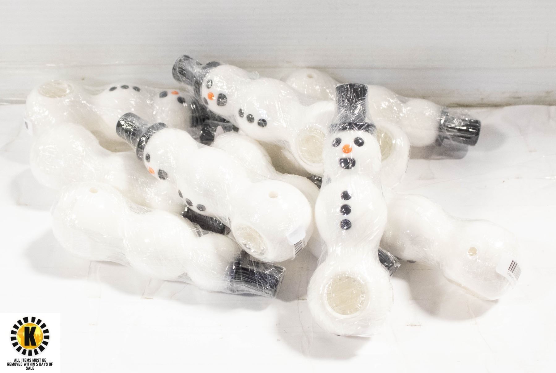 10PK OF SILICONE SNOWMAN PIPES W/ GLASS BOWLS