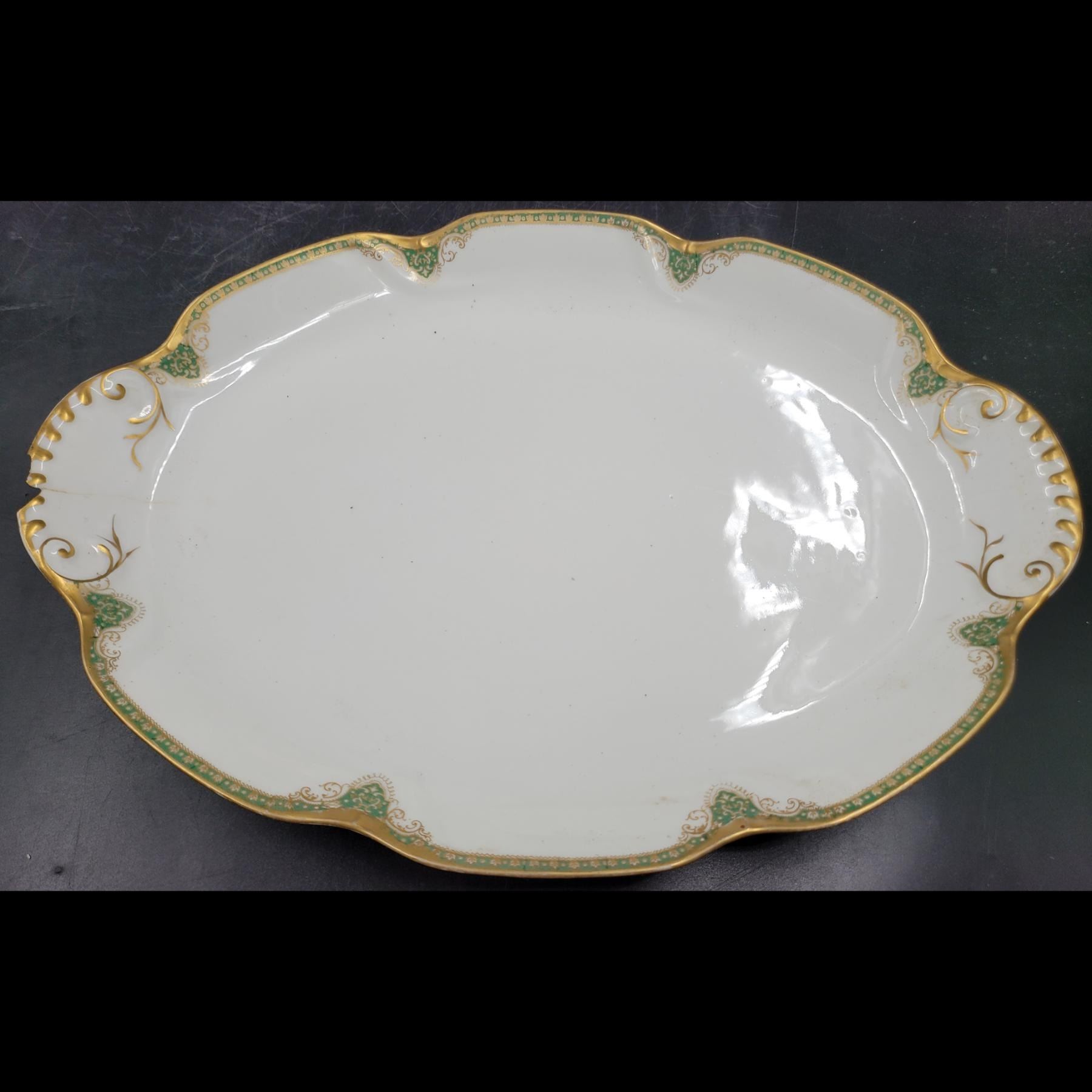 10Pc Lot Of Vintage 8Pc Theodore Haviland And 2Pc German Porcelain. One of the Theodore Haviland platters has a break in it, please see pictures. plates measure approx. from 16" X 11.5" X 1.5" to 5" X 5" X 1". Bowls and vase measures approx 12" X 7.5" X 4.5" to 6" X 6.5" X 6".
