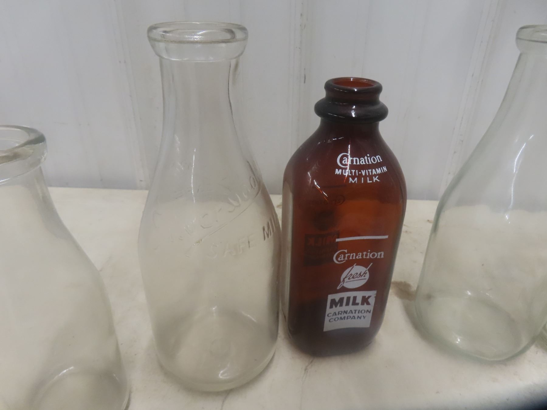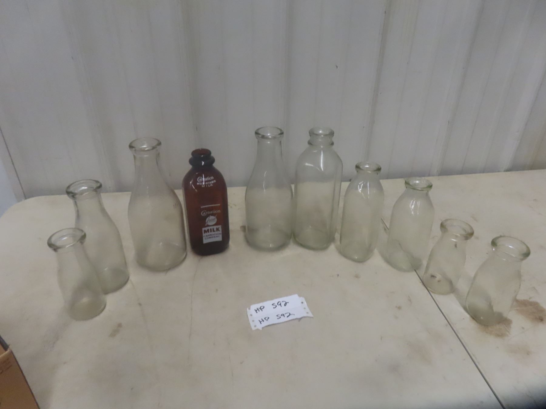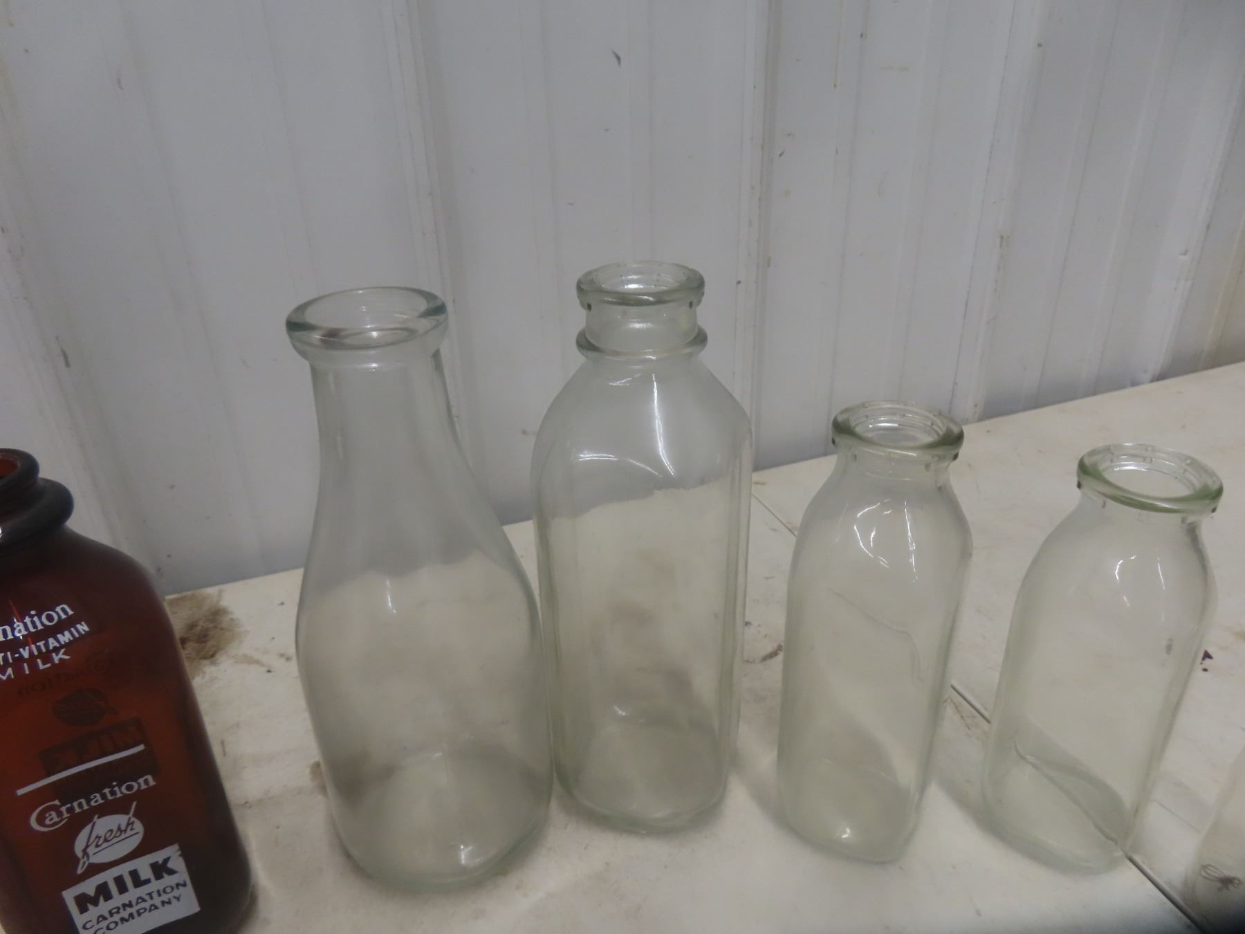10X Milk / Cream Bottles 2 With Labels, Silverware + Carnation