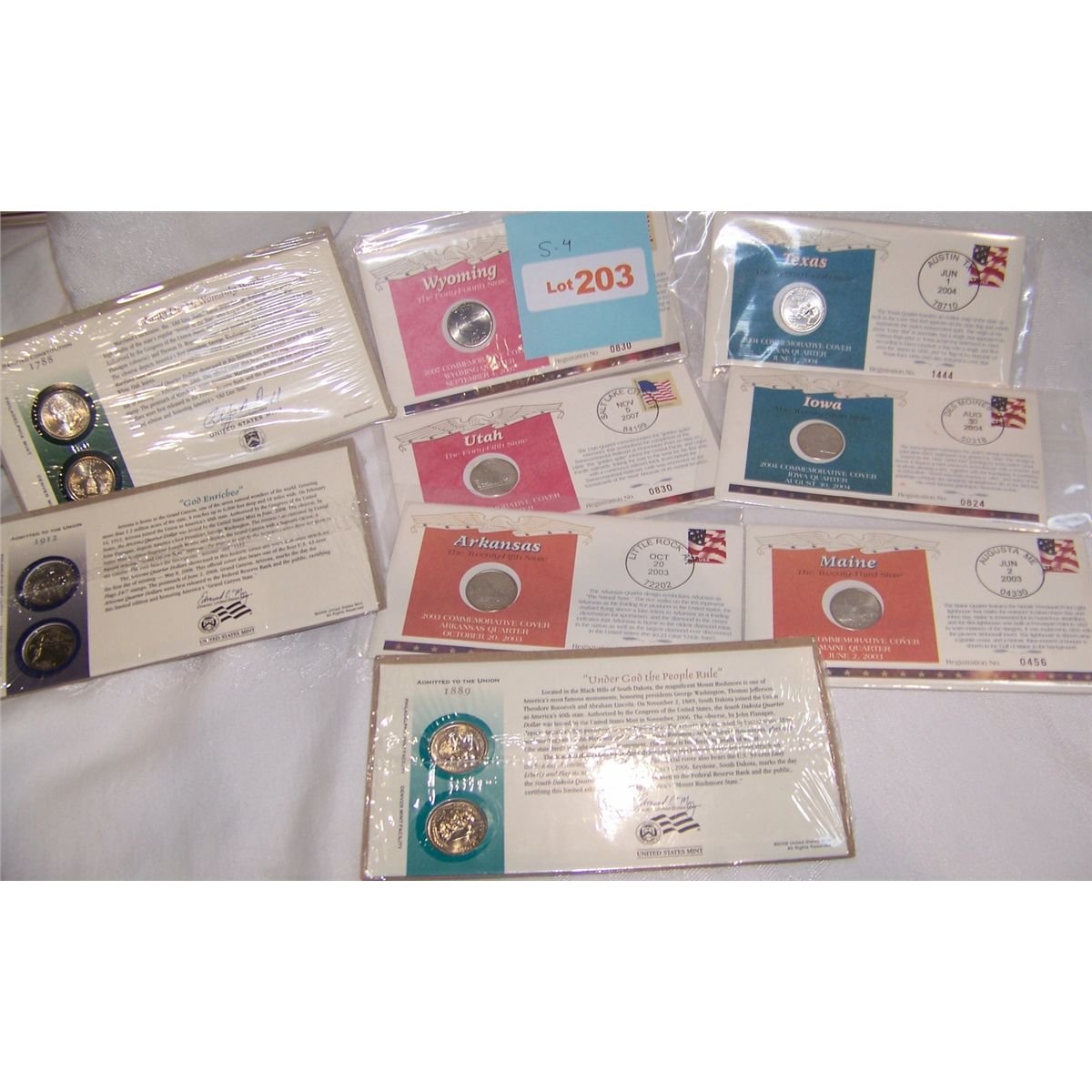 (10X The Bid) AZ, SD, MD, AR, ME, IA, UT, TX, and WY Quarters Commemorative Covers.