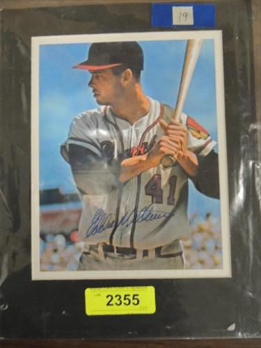 10X13 MATTED BASEBALL PHOTO AUTOGRAPH EDDIE MATHEWS COA. INCLUDES COA FROM MYST-O-GRAPH. AS SHOWN. VIEW PICTURE FOR DETAIL. PLEASE BE ADVISED, AND INFORMED REGARDING SIGNATURES OR AUTOGRAPHS THAT WE SELL AT AUCTION: WE ARE NOT AUTHENTICATORS, AND WE DO NOT AUTHENTICATE, OR VALIDATE ANY AUTOGRAPHS OR SIGNATURES THAT WE OFFER AT AUCTION. SOME AUTOGRAPHS OR SIGNATURES MAY COME WITH AN AUTHENTICATION FROM ANY ONE OF LITERALLY HUNDREDS OF AUTHENTICATORS ACROSS THE COUNTRY, AND AROUND THE WORLD. WE DO NOT ENDORSE ANY AUTHENTICATOR, NOR DO WE GUARANTEE THAT ANY AUTOGRAPH OR SIGNATURE IS AUTHENTIC, OR THAT IT WILL PASS AUTHENTICATION BY ANY AUTHENTICATOR. ALL AUTOGRAPHS OR SIGNATURES ARE SOLD
