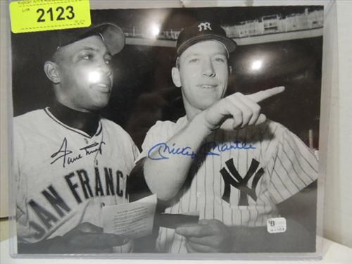 10X8 BASEBALL PHOT 2 AUTOGRAPHS WILLIE MAYS & MICKEY MANTLE COA. INCLUDES COA STICKER FROM GAI # GV 413234. AS SHOWN. VIEW PICTURE FOR DETAIL. PLEASE BE ADVISED, AND INFORMED REGARDING SIGNATURES OR AUTOGRAPHS THAT WE SELL AT AUCTION: WE ARE NOT AUTHENTICATORS, AND WE DO NOT AUTHENTICATE, OR VALIDATE ANY AUTOGRAPHS OR SIGNATURES THAT WE OFFER AT AUCTION. SOME AUTOGRAPHS OR SIGNATURES MAY COME WITH AN AUTHENTICATION FROM ANY ONE OF LITERALLY HUNDREDS OF AUTHENTICATORS ACROSS THE COUNTRY, AND AROUND THE WORLD. WE DO NOT ENDORSE ANY AUTHENTICATOR, NOR DO WE GUARANTEE THAT ANY AUTOGRAPH OR SIGNATURE IS AUTHENTIC, OR THAT IT WILL PASS AUTHENTICATION BY ANY AUTHENTICATOR. ALL AUTOGRAPHS OR SIGNATURES ARE SOLD