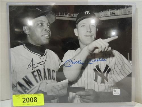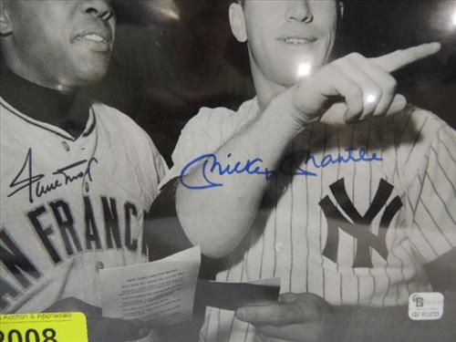 10X8 BASEBALL PHOTO 2 AUTOGRAPHS MICKEY MANTLE & WILLIE MAYS COA. INCLUDES COA STICKER FROM GAI # GV413233