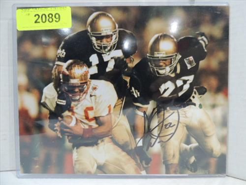 10X8 COLLIGATE FOOTBALL PHOTO AUTOGRAPH SHAWN WOODEN COA. INCLUDES COA FROM PRIMETIME COLLECTIONS. AS SHOWN. VIEW PICTURE FOR DETAIL.