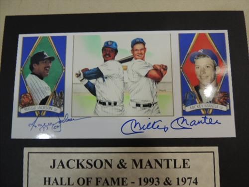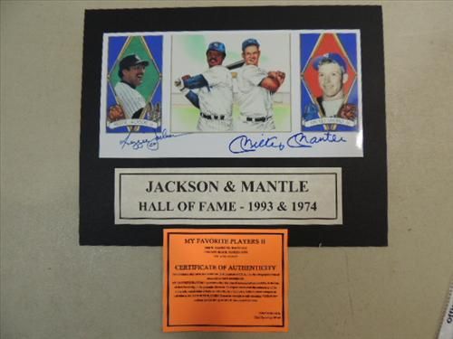 10X8 MATTED BASEBALL PRINT 2 AUTOGRAPHS: MICKEY MANTLE & REGGIE JACKSON. INCLUDES COA FROM MFP II . AS SHOWN. VIEW PICTURE FOR DETAIL. PLEASE BE ADVISED, AND INFORMED REGARDING SIGNATURES OR AUTOGRAPHS THAT WE SELL AT AUCTION: WE ARE NOT AUTHENTICATORS, AND WE DO NOT AUTHENTICATE, OR VALIDATE ANY AUTOGRAPHS OR SIGNATURES THAT WE OFFER AT AUCTION. SOME AUTOGRAPHS OR SIGNATURES MAY COME WITH AN AUTHENTICATION FROM ANY ONE OF LITERALLY HUNDREDS OF AUTHENTICATORS ACROSS THE COUNTRY, AND AROUND THE WORLD. WE DO NOT ENDORSE ANY AUTHENTICATOR, NOR DO WE GUARANTEE THAT ANY AUTOGRAPH OR SIGNATURE IS AUTHENTIC, OR THAT IT WILL PASS AUTHENTICATION BY ANY AUTHENTICATOR. ALL AUTOGRAPHS OR SIGNATURES ARE SOLD