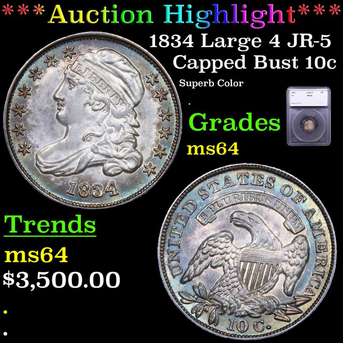 10c 1834 Large 4 JR-5 Capped Bust Dime 10c Grades Choice Unc. A Key Date's Pick, Bid to Win, Don't let it get Away Coin