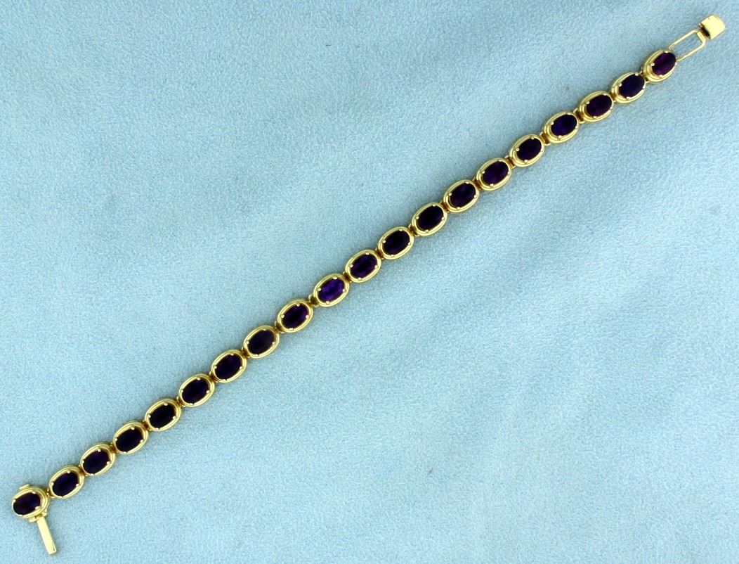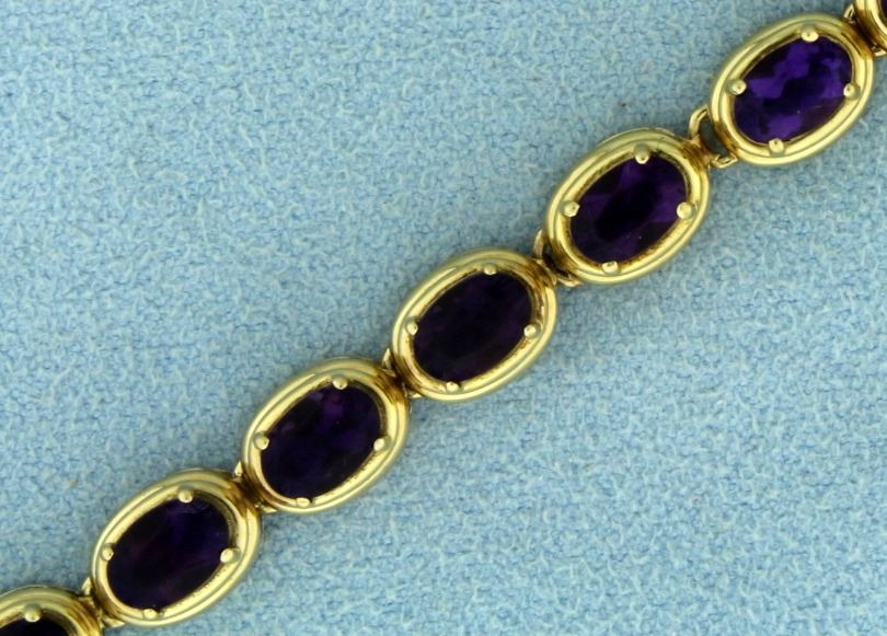 In 14k yellow gold, containing very high quality amethyst gemstones with excellent color and clarity. 16.1g.