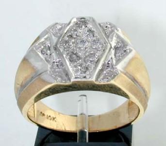 This is a Wonderful 10K 2-Tone Gold Diamond Ring. The total ring's weight is 9.6 grams. The total weight of diamond is 0.45 ct. approximately and I color SI clarity. The size of the ring on the surface is 11x11 mm. The size of the ring is 9.5.