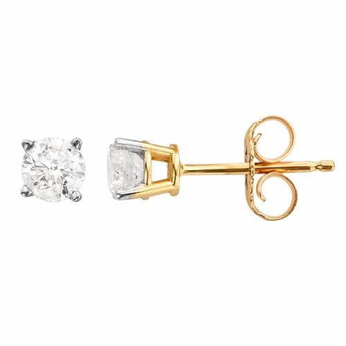Adorned with a solitaire round-cut diamond, these 10k gold stud earrings are the epitome of elegance.