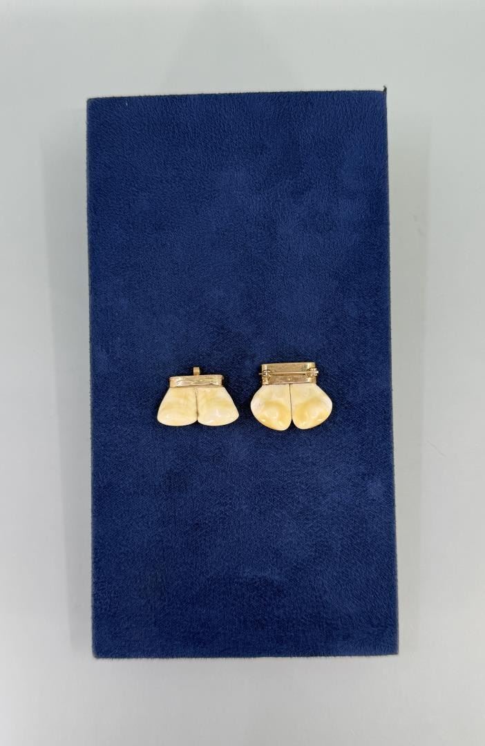 10.6 grams. One is a brooch, the other is a watch fob. Largest is 1 1/8" long. This lot requires payment via non credit card.