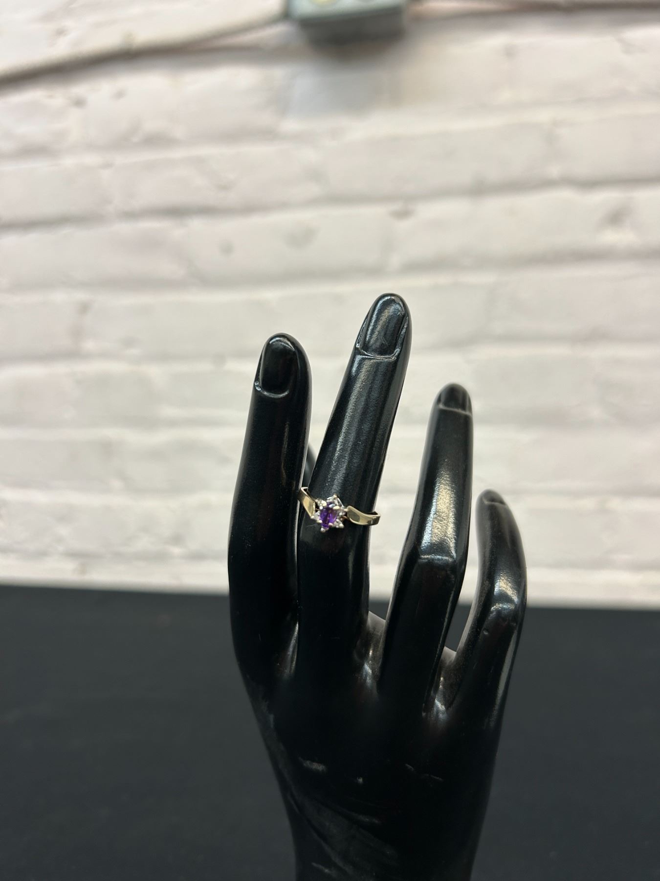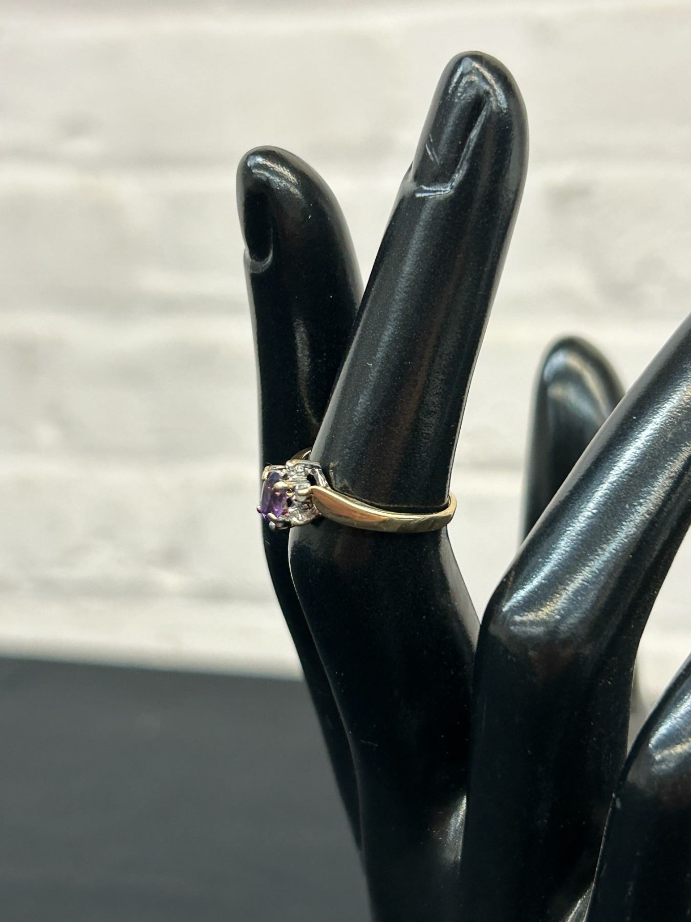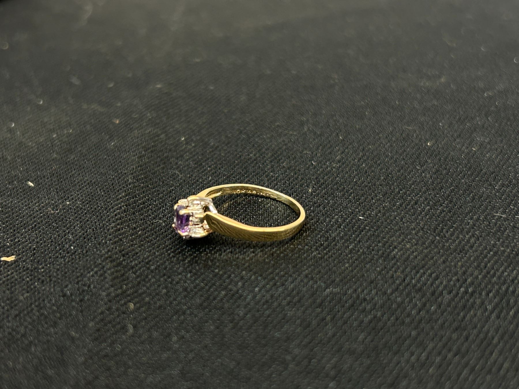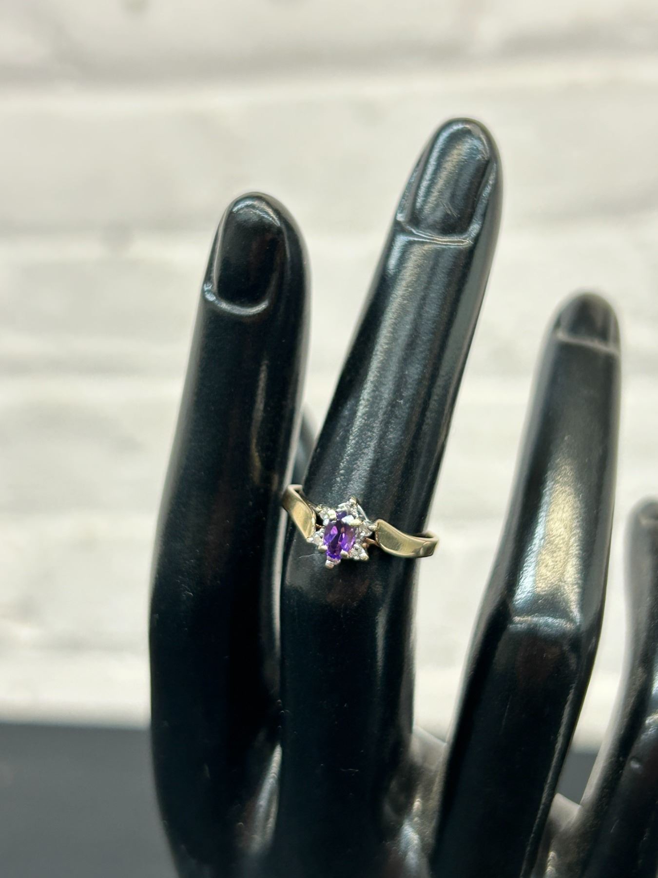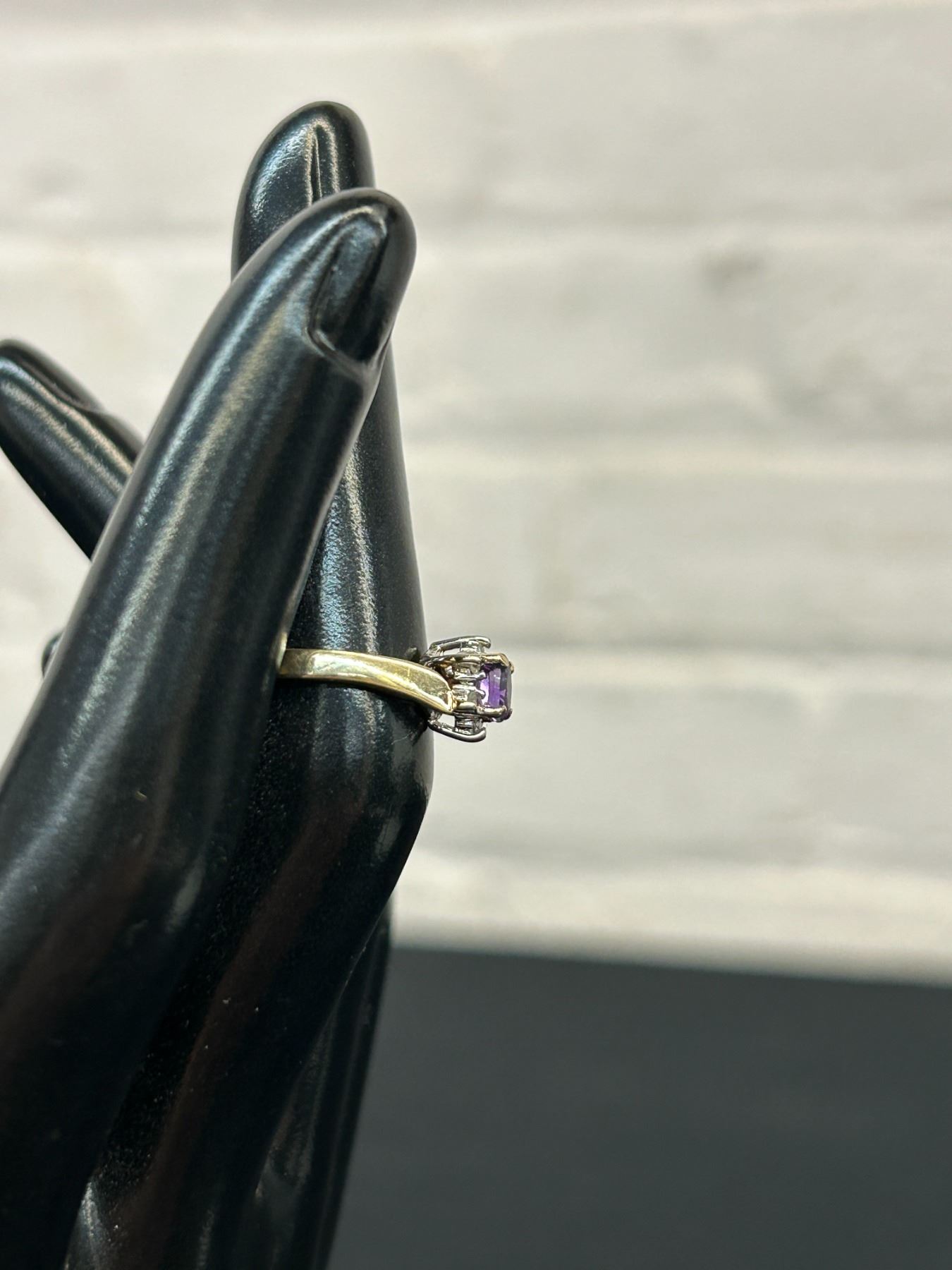10k Gold Dinner Style Ring Amethyst and Small Diamonds, 1.5grams, Size 5.5