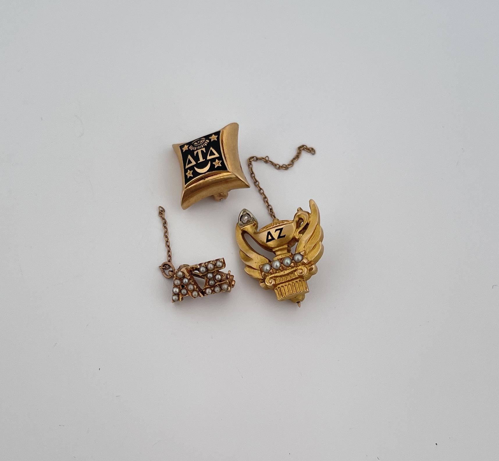 Delta Tau Delta, Delta Zeta, Sigma Alpha. All are 10k Gold. 9.5 Grams Total Weight.