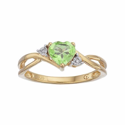 A heart-shaped peridot gemstone serves as the focal point to this beautiful ring, while shimmering diamond accents add eye-catching style.