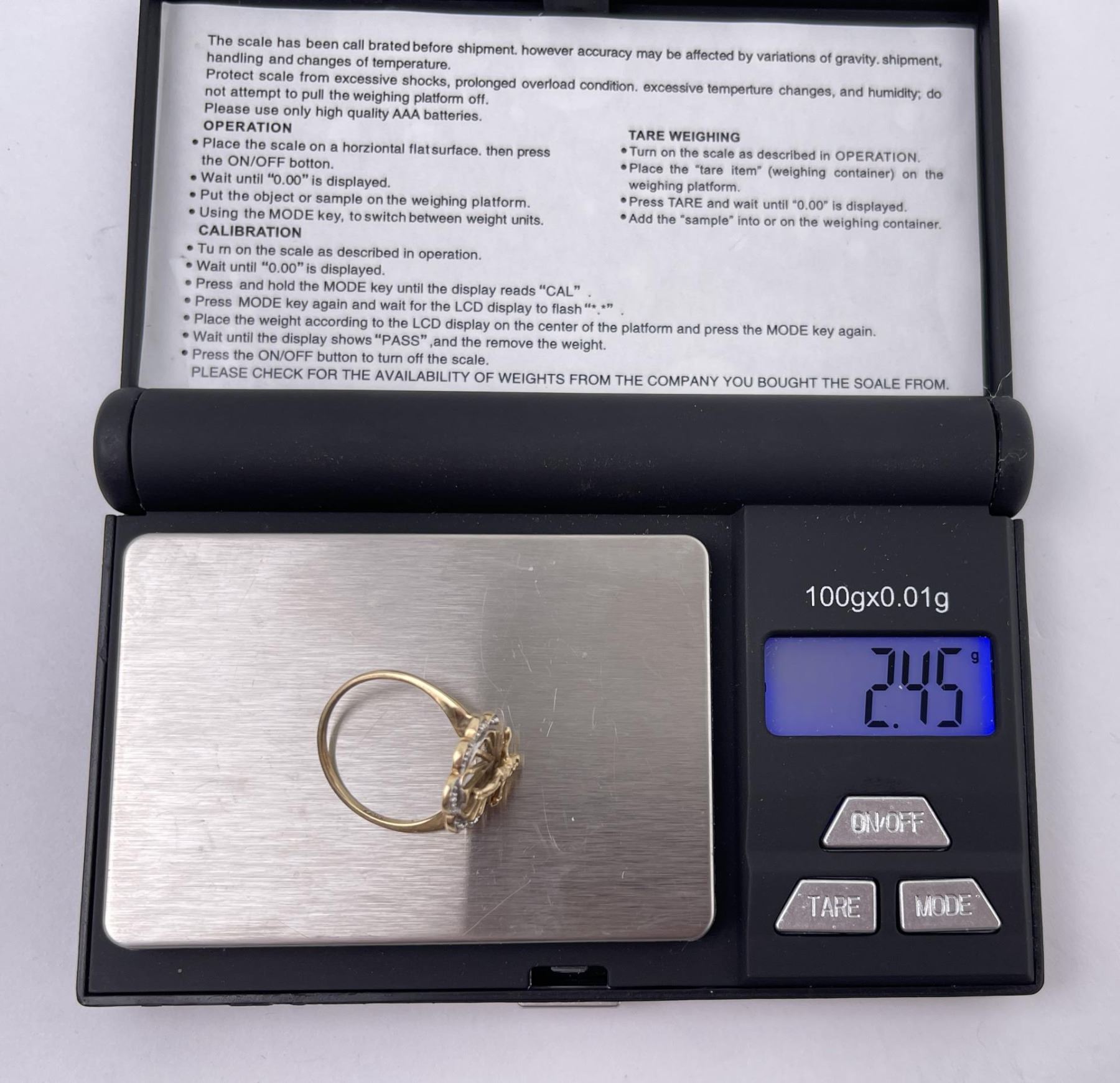 Size 6 1/4. Weighs 2.45 grams.