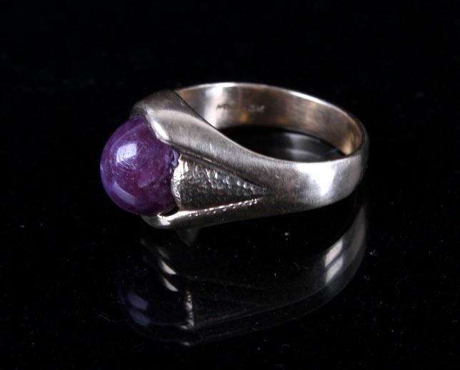 This lot features a 10k gold and star ruby mens ring. The ring has a stunning star ruby. Asterism, or star stone, is a name applied to the phenomenon of gemstones exhibiting a luminous star-like shape when cut en cabochon (shaped and polished rather than faceted). The ring is in good condition for its age. Measures: 9.5 size