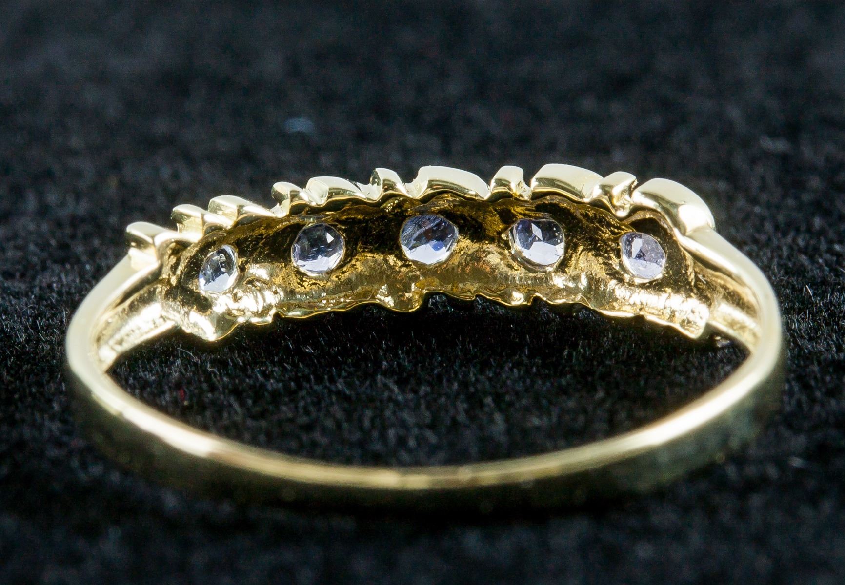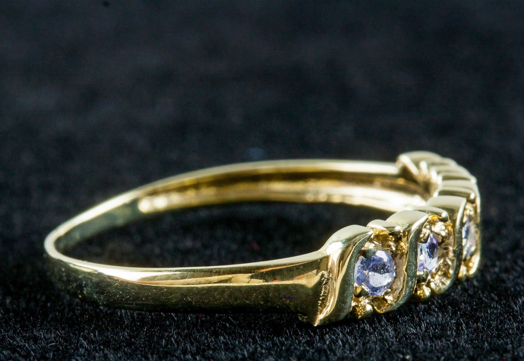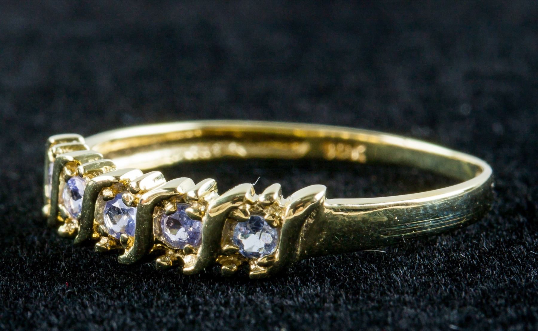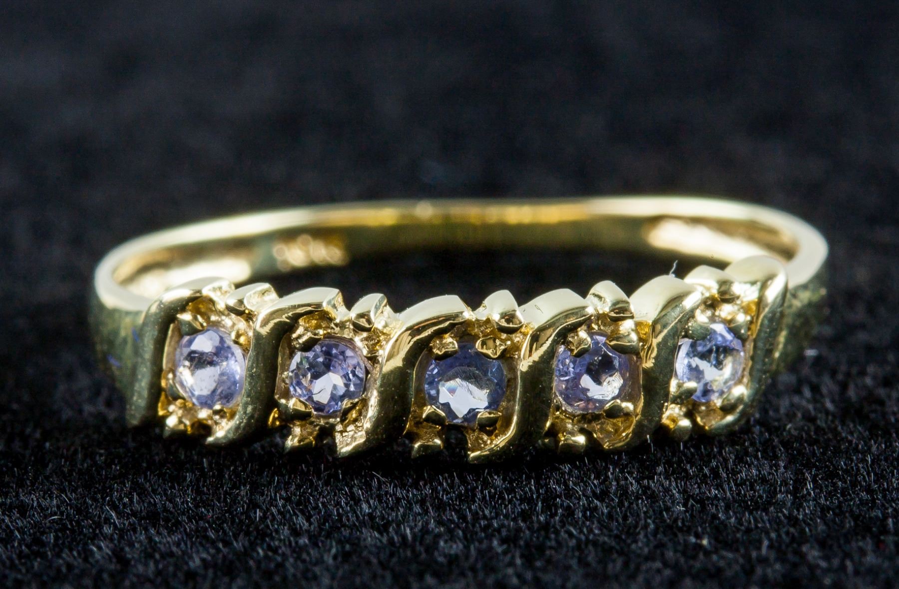10k gold ring, set with 5 brilliant cut tanzanite, size 7, PROVENANCE: Private collection (Nova Scotia, Canada)
