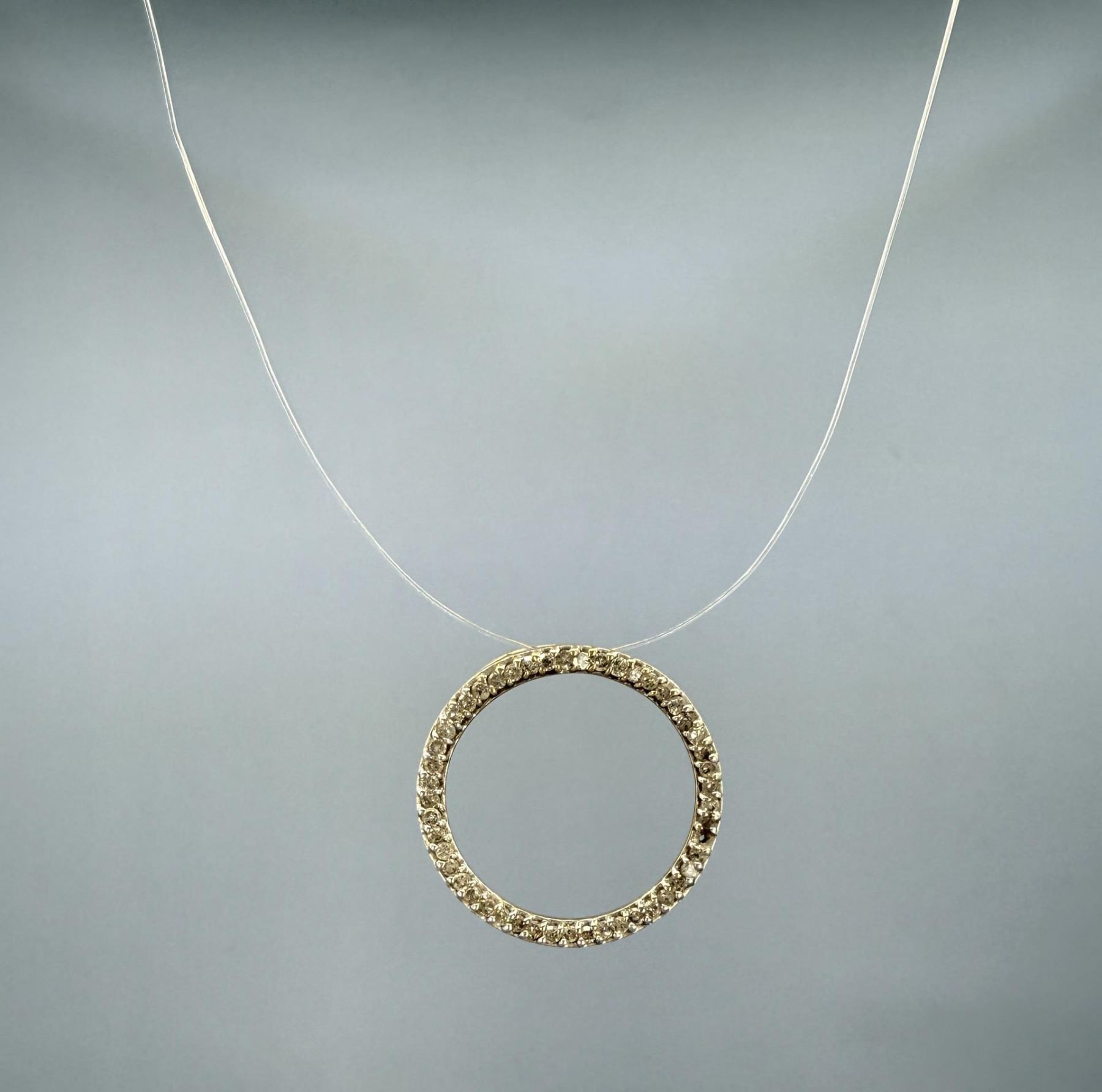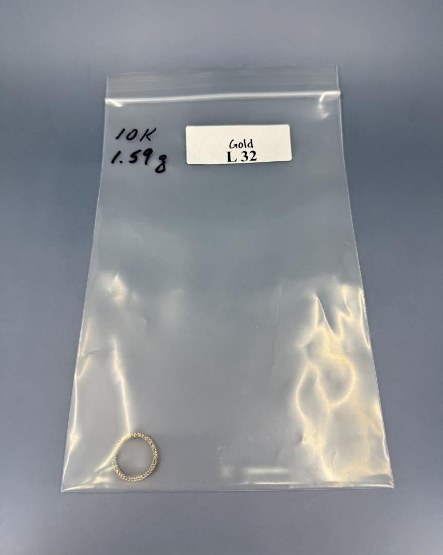 3/4" diameter. 1.59 grams. 49 total diamonds, .24ct total weight, I-J Color, I1-I2 Clarity.
