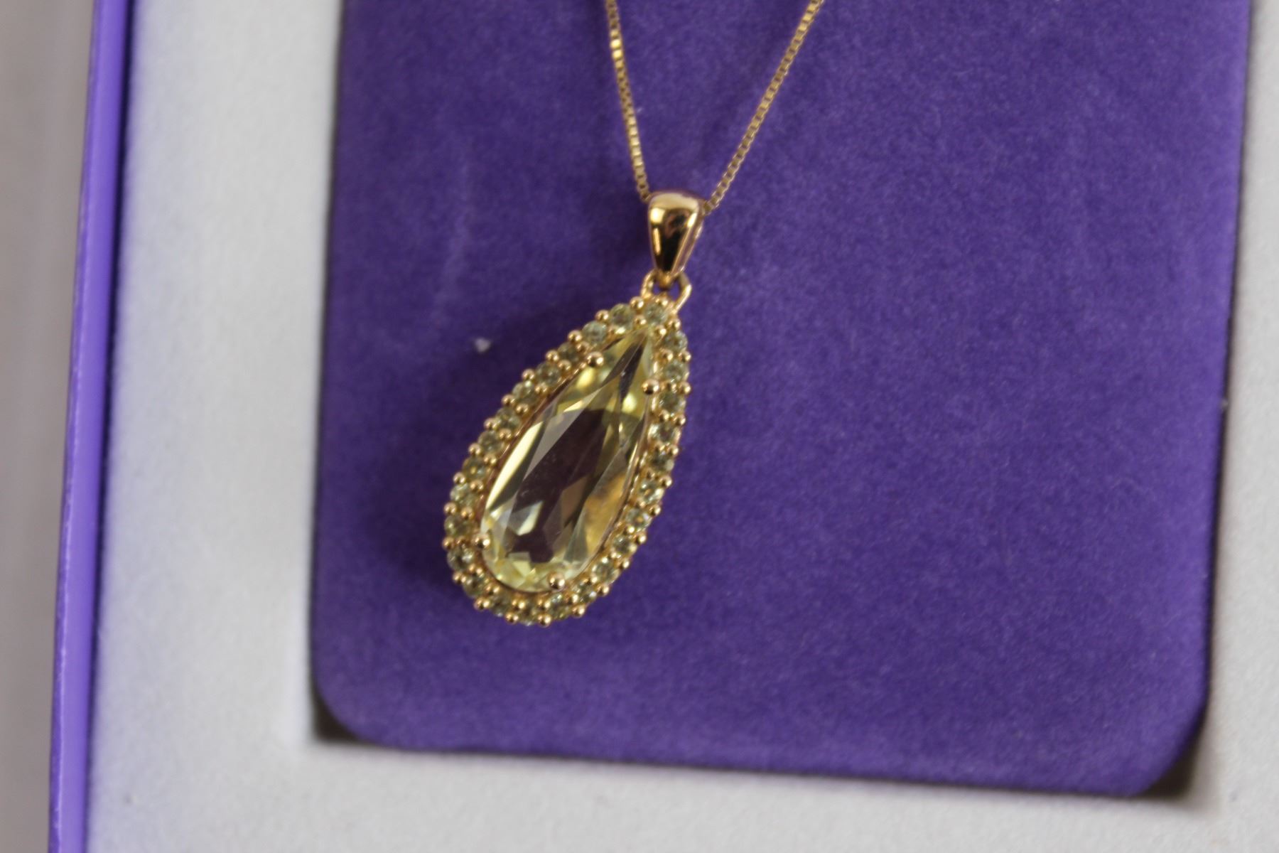 ^ 10k Gold with Citrine Stone and CZ Necklace