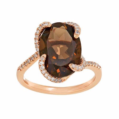 Featuring an oval-cut genuine smoky quartz center stone wrapped in round-cut diamond accents, this 10k rose gold ring is sure to garner compliments.