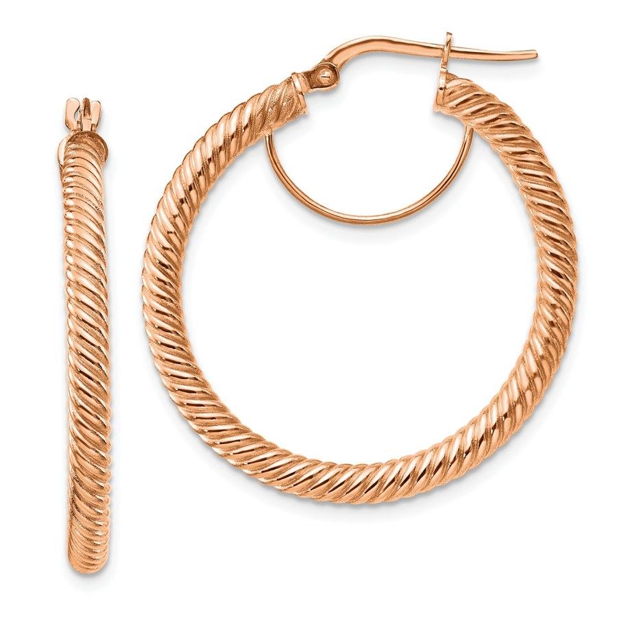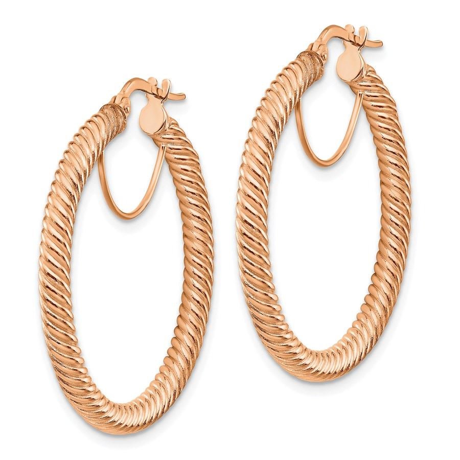 10k Rose Gold Twisted Round Omega Back Hoop Earrings - 3x25 mm