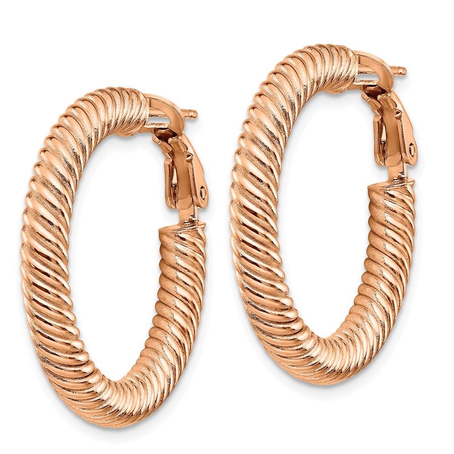 10k Rose Gold Twisted Round Omega Back Hoop Earrings - 4x20 mm