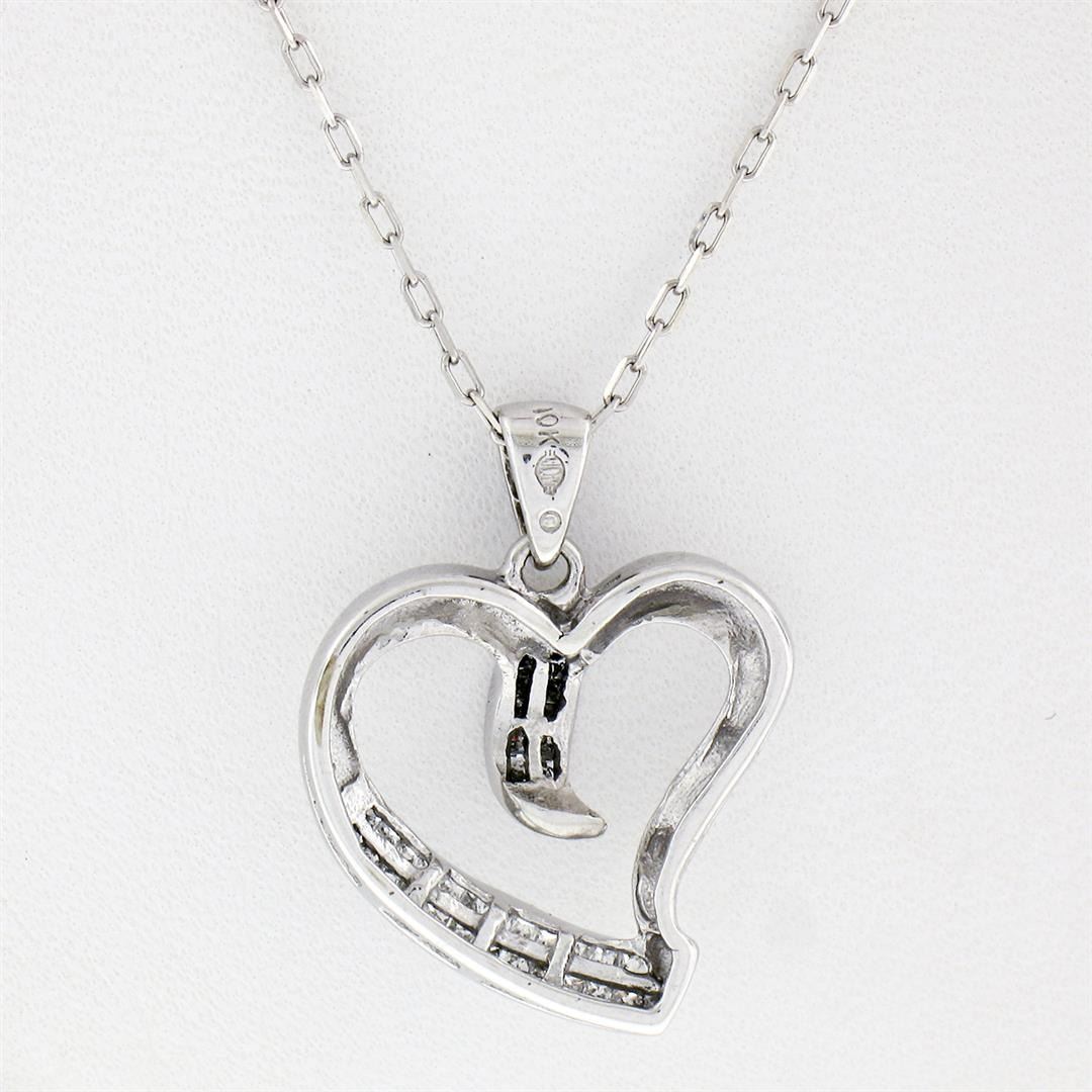 10k White Gold 0.25 ctw Dual Channel Princess Cut Diamond Open Heart Pendant Nec
