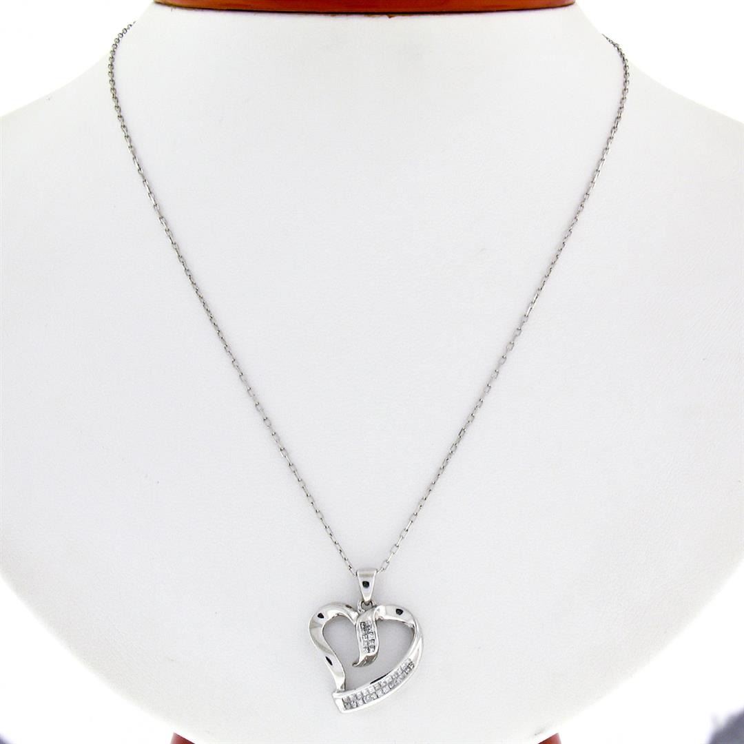 10k White Gold 0.25 ctw Dual Channel Princess Cut Diamond Open Heart Pendant Nec