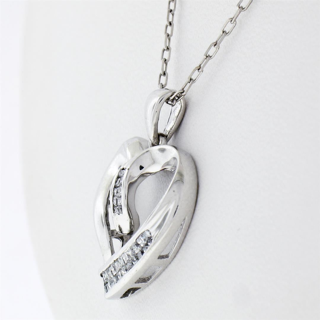10k White Gold 0.25 ctw Dual Channel Princess Cut Diamond Open Heart Pendant Nec
