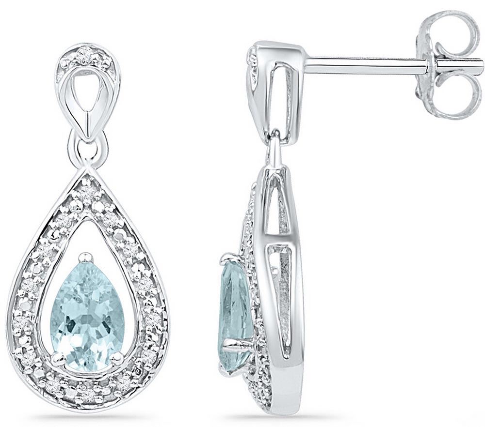 10k White Gold Natural Diamond & Lab-Created Aquamarine **|**|** 10k White Gold Natural Diamond & Lab-Created Aquamarine Teardrop Dangle Screwback Earrings 5/8 Cttw
