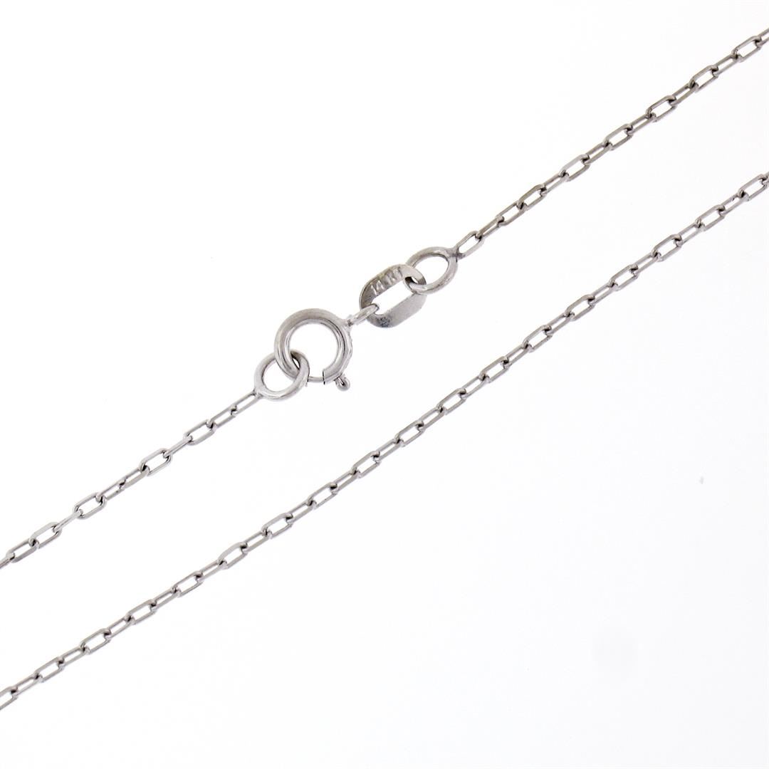 A 10k white gold open heart pendant necklace featuring 12 pave set round single cut diamonds (H/I - SI2/I1; 0.06ctw). 16 inch 14k white gold cable link chain, 2.07 grams total weight, pendant measures 20.5x14.0mm.