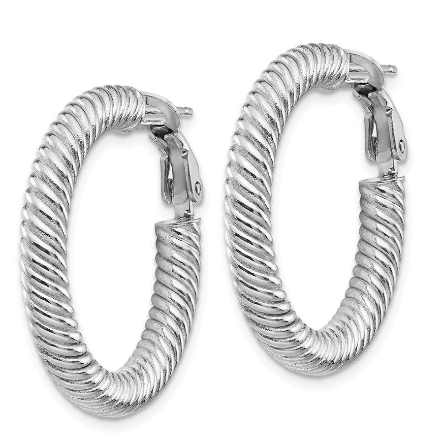 10k White Gold Twisted Round Omega Back Hoop Earrings - 4x20 mm