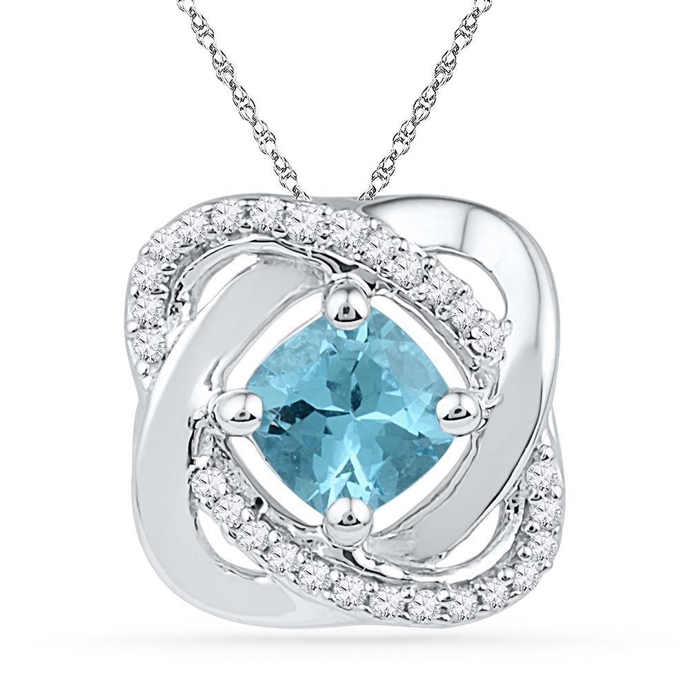 10k White Gold Womens Lab-Created Blue Topaz & Natural **|**|** 10k White Gold Womens Lab-Created Blue Topaz & Natural Diamond Square Fashion Pendant 3/4 Cttw