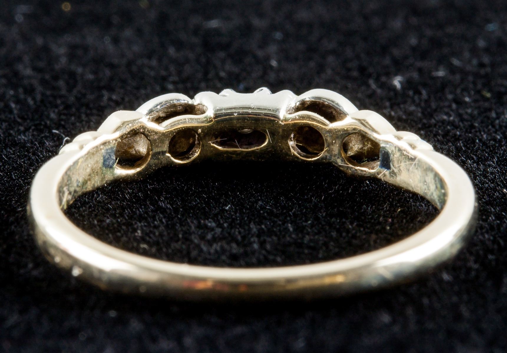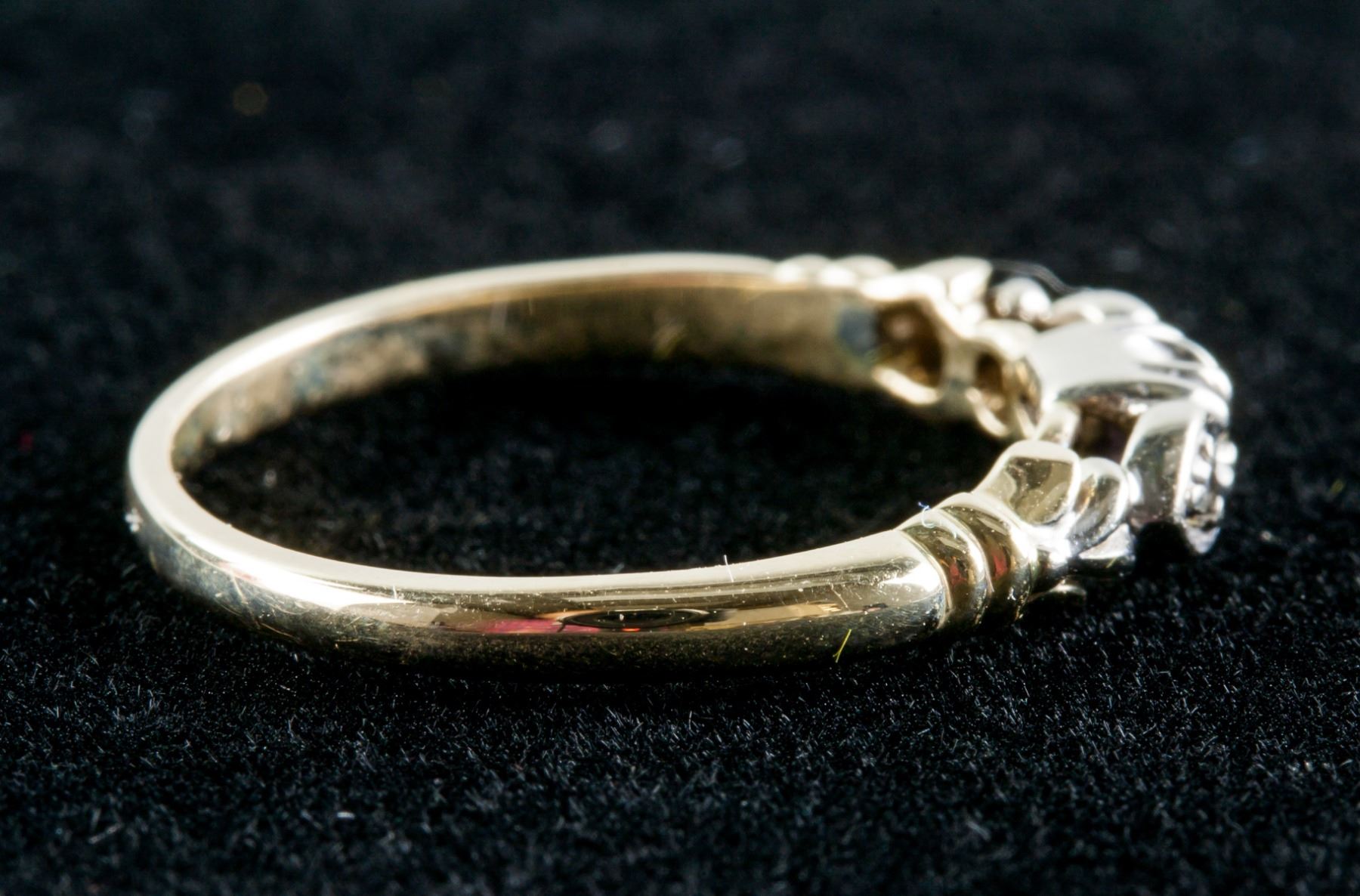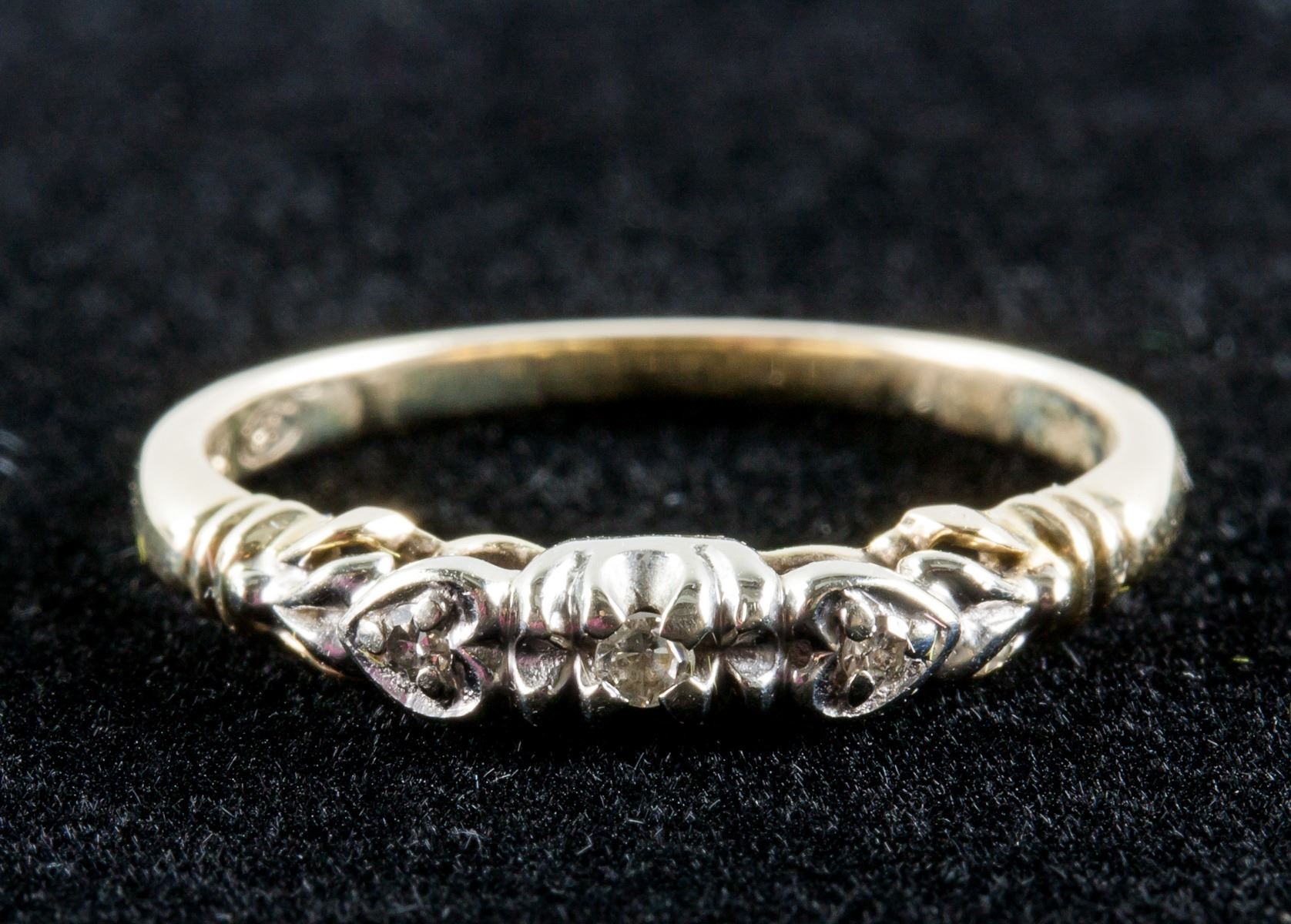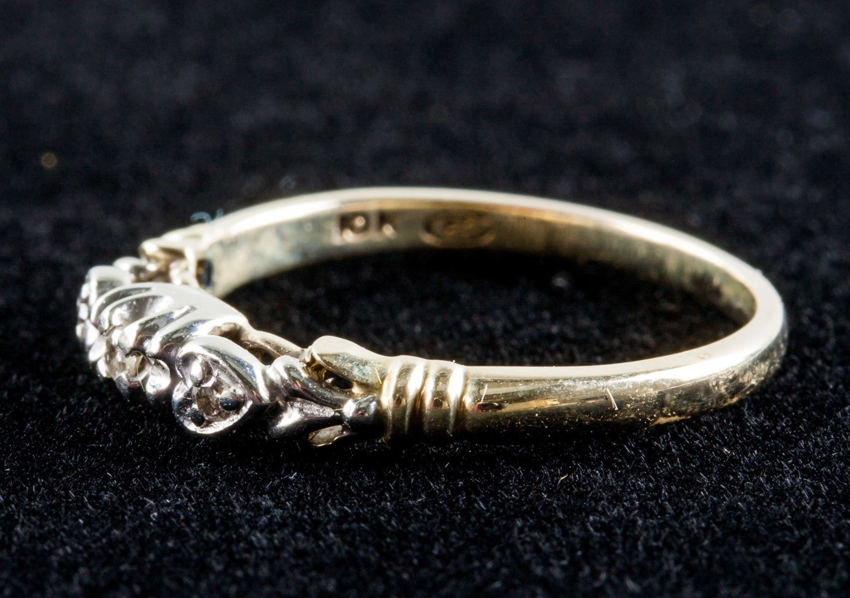 Stamped 10k white and yellow gold ring, set with diamonds. Retail value $800.