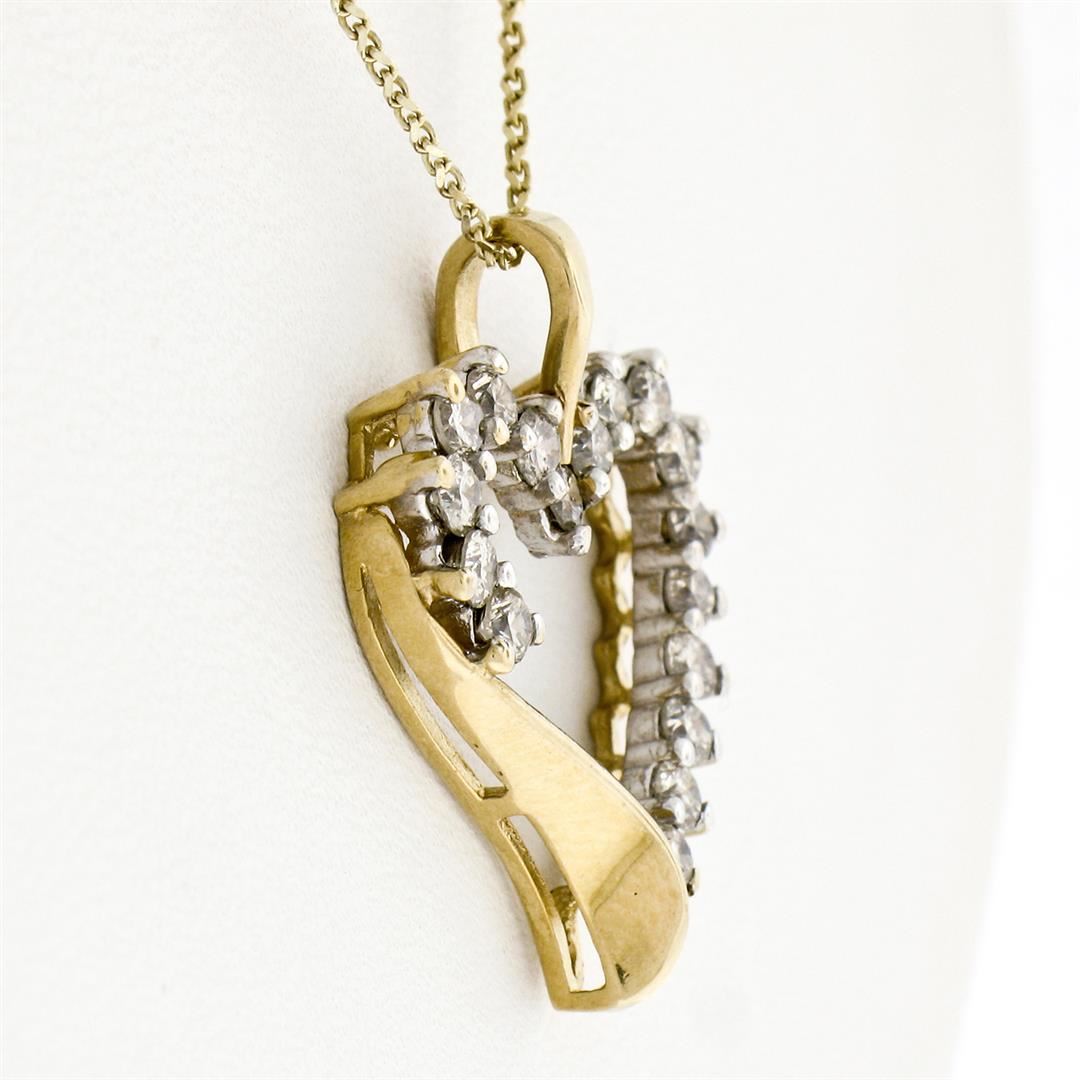 10k Yellow Gold 16" .60 ctw Round Prong Set Diamond Open Heart Pendant Necklace