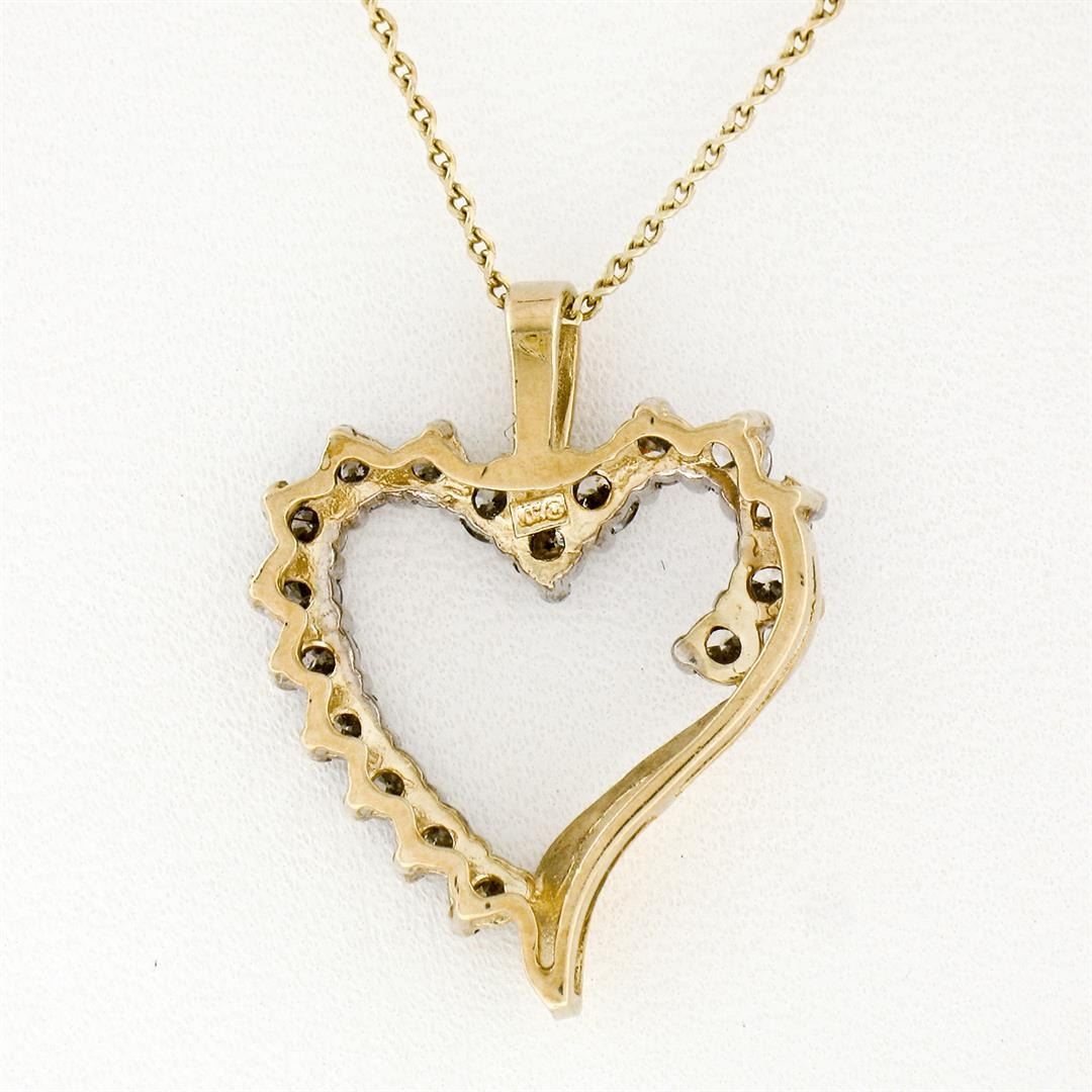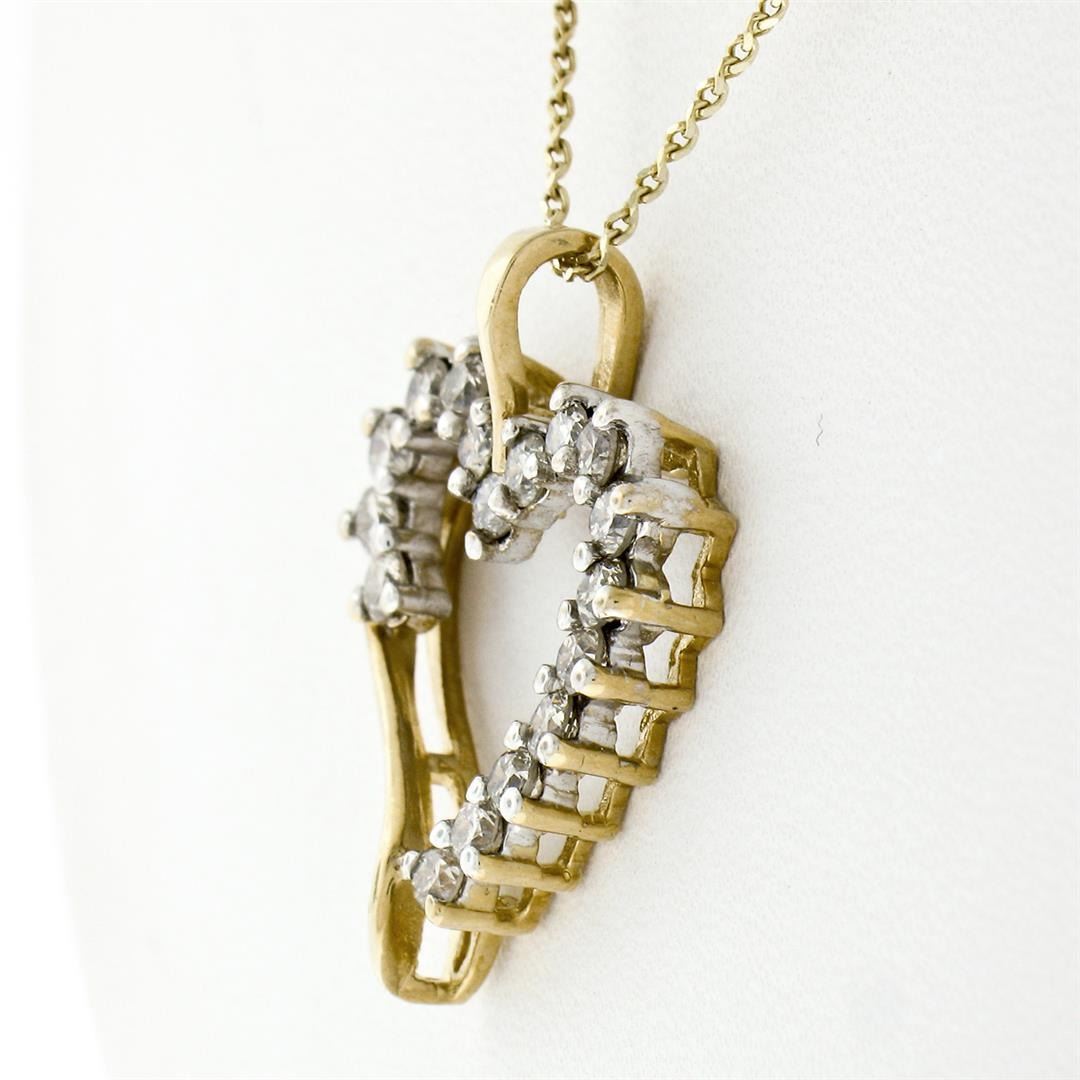 10k Yellow Gold 16" .60 ctw Round Prong Set Diamond Open Heart Pendant Necklace