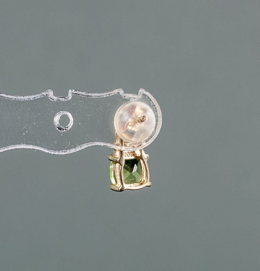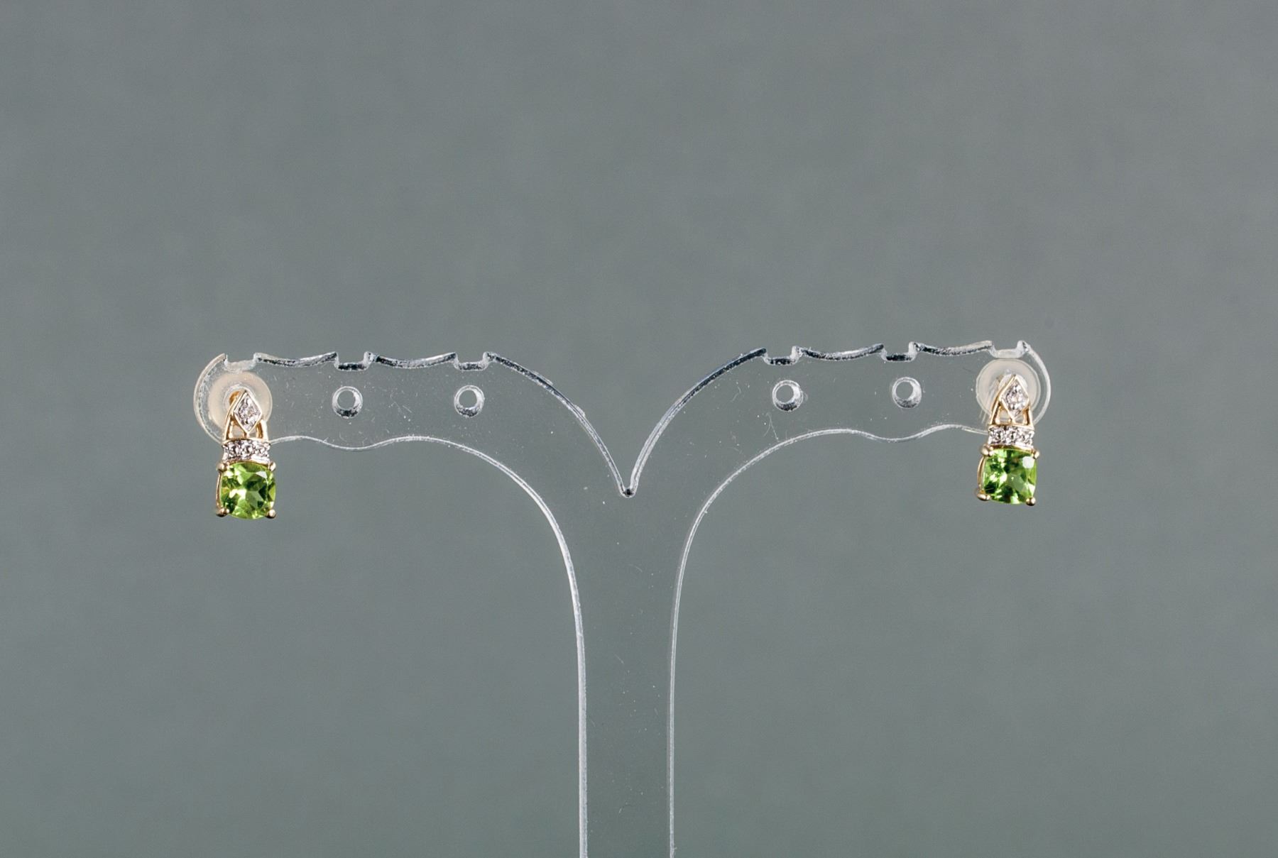 Stamped 10k yellow gold earrings; set with peridot and diamond; retail value $500; 1.1 cm x 0.5 cm, 0.71 grams