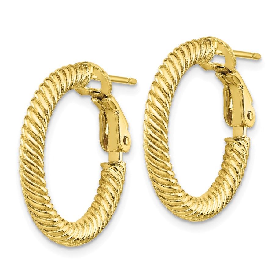 10k Yellow Gold Twisted Round Omega Back Hoop Earrings - 15 mm