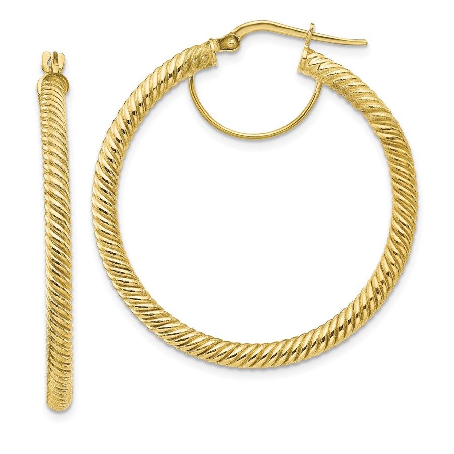 10k Yellow Gold Twisted Round Omega Back Hoop Earrings - 3x30 mm