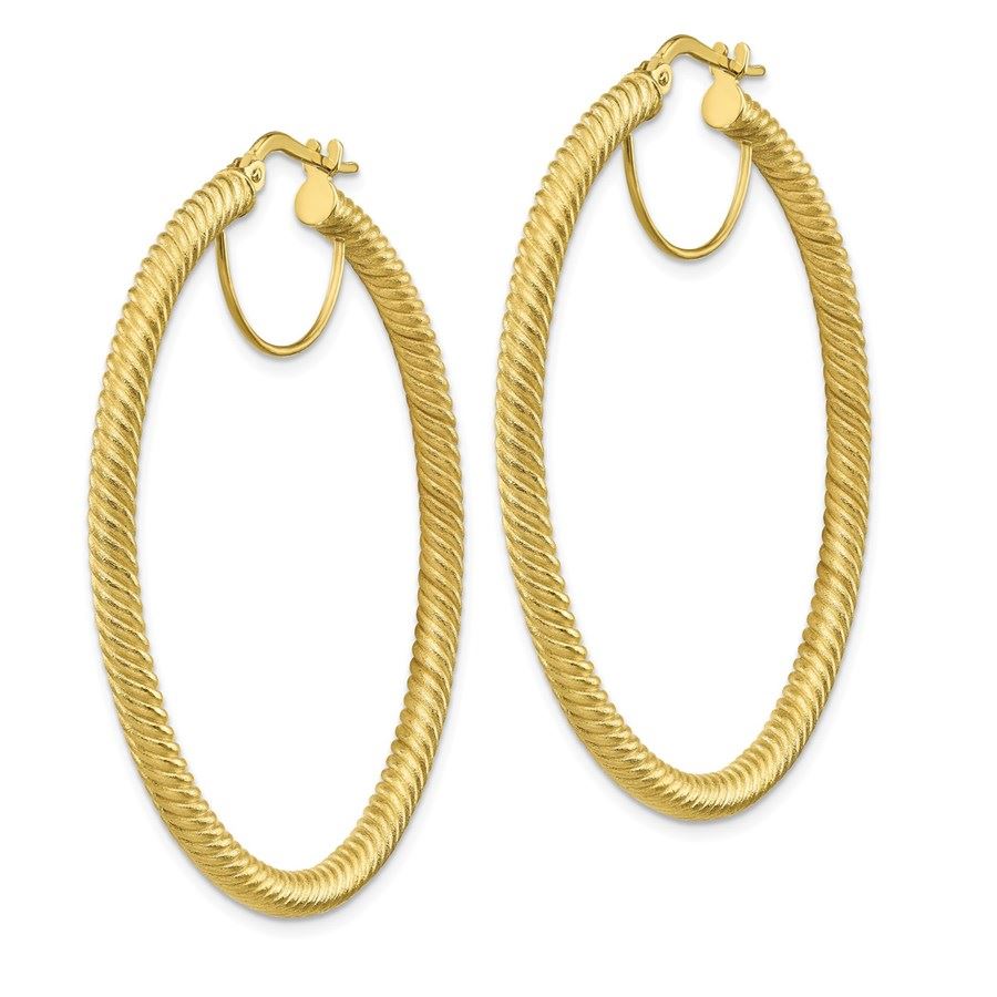 10k Yellow Gold Twisted Round Omega Back Hoop Earrings - 3x40 mm