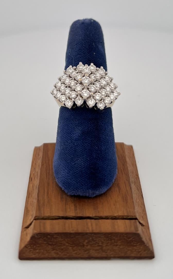 Wonderful ring. H color SI grade. 37 Diamonds at .11 carat each. 4.07 carats total weight. Size 6 3/4.