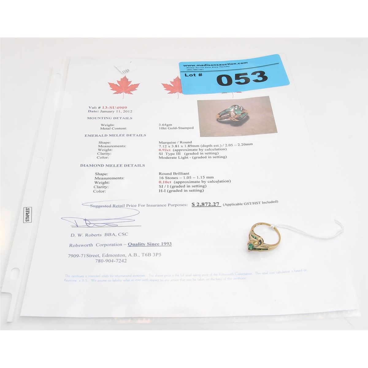 cocktail ring. Appraised value $2872.27