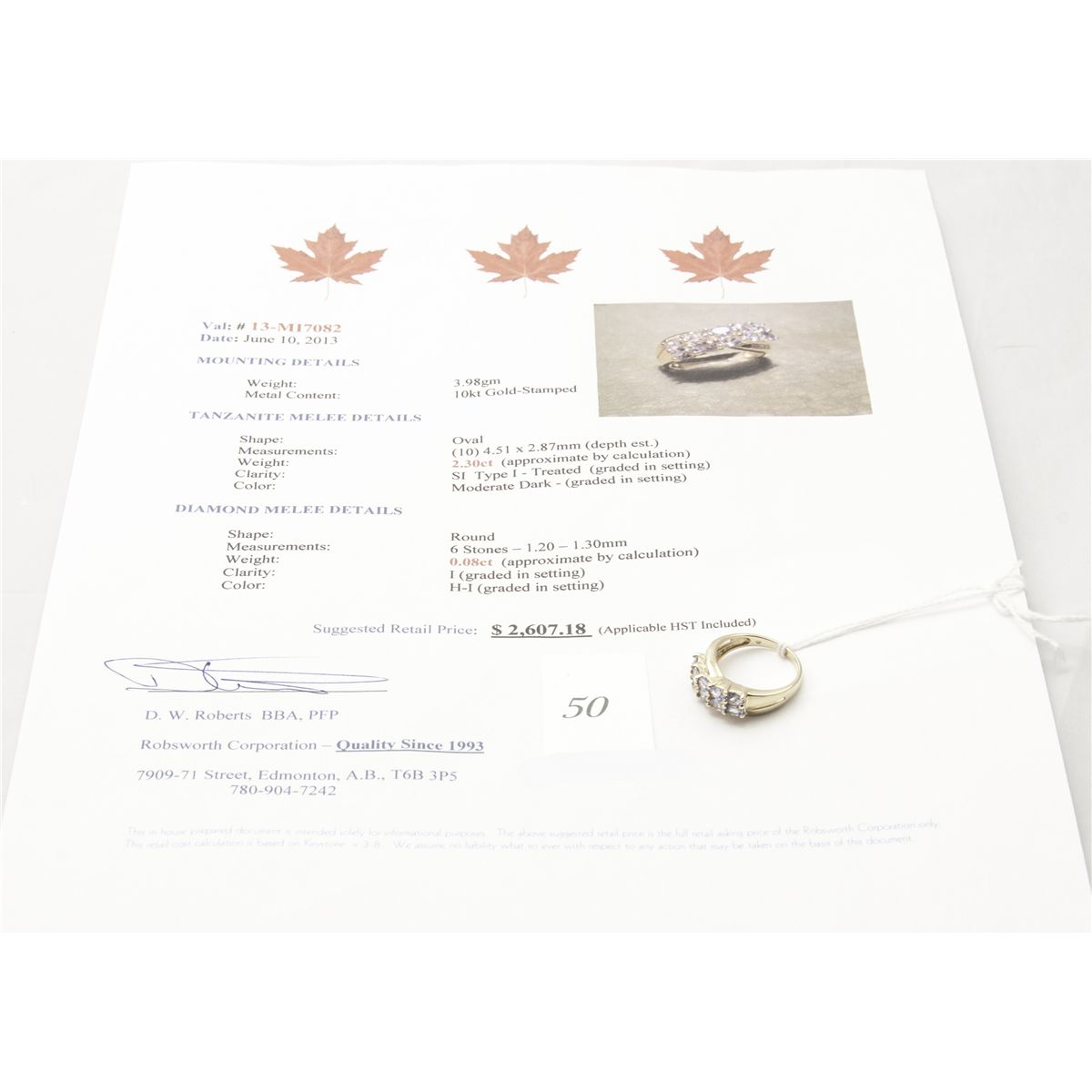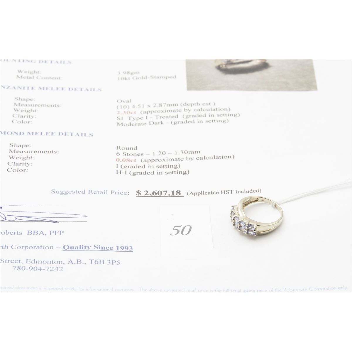 diamond ring. appraised at $2087.18