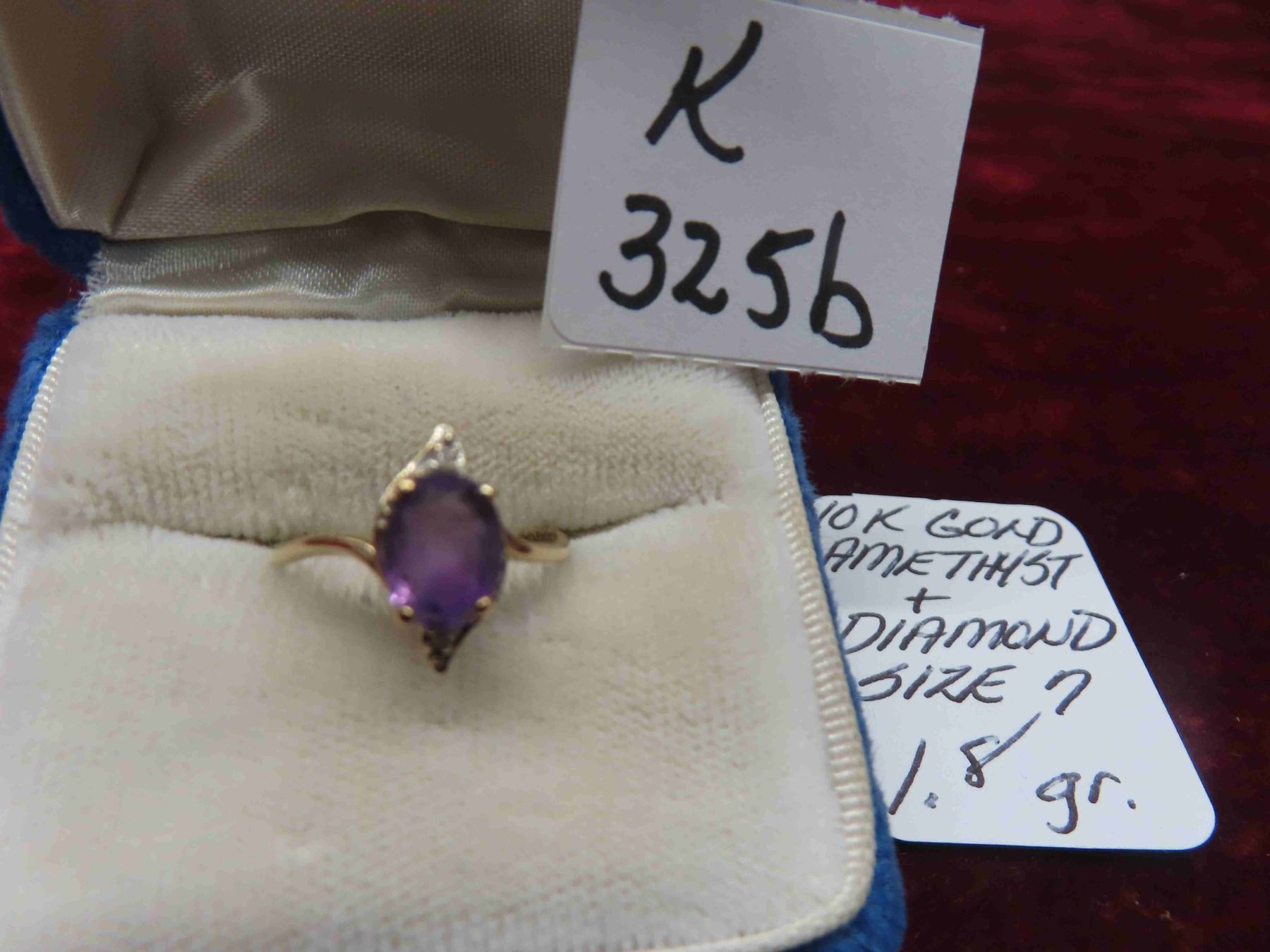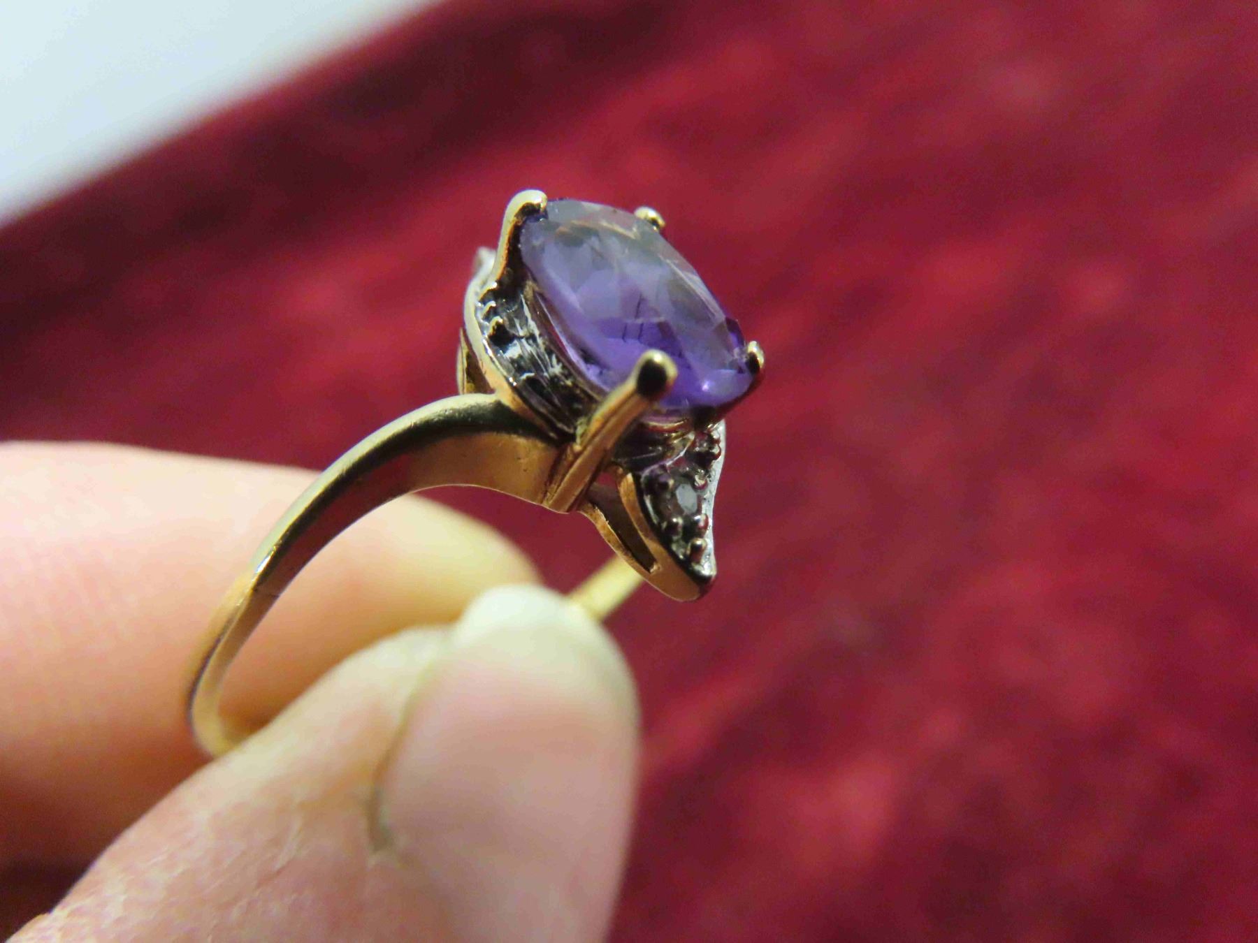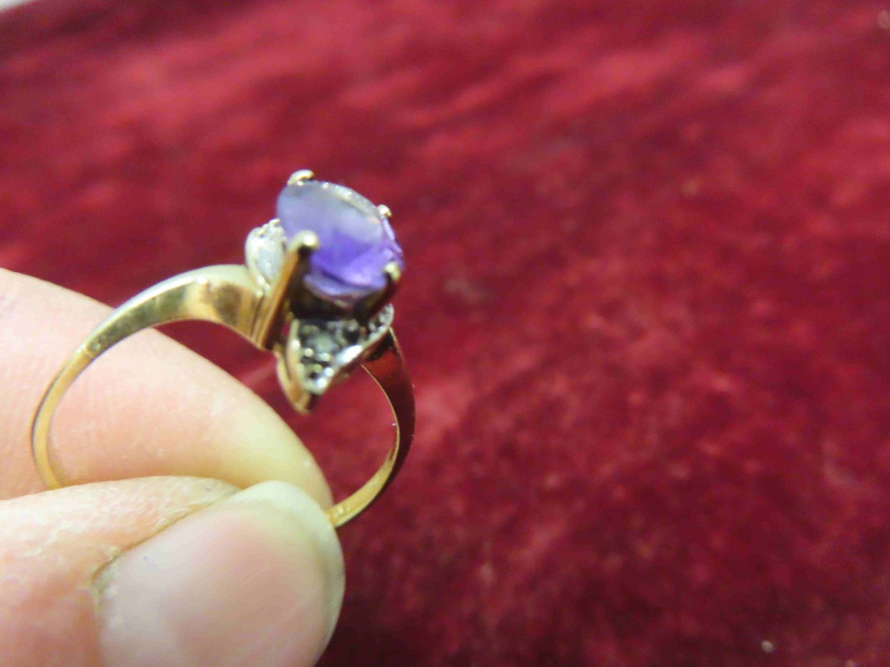 10kt Gold, Amethyst & Diamond Ring Size 7 Total Weight 1.8 Grams
